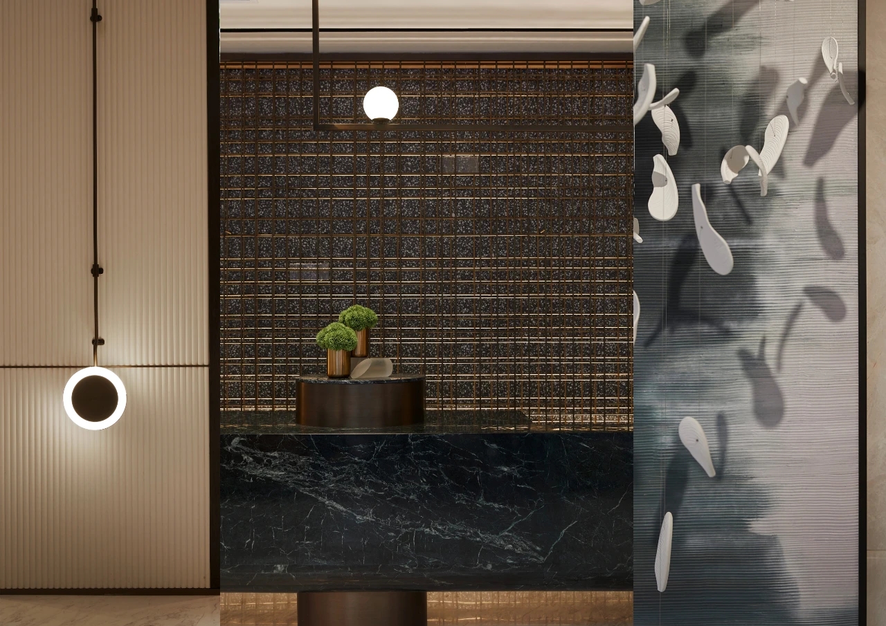 项目用材:祖母绿大理石,黄铜,水磨石,深色橡木