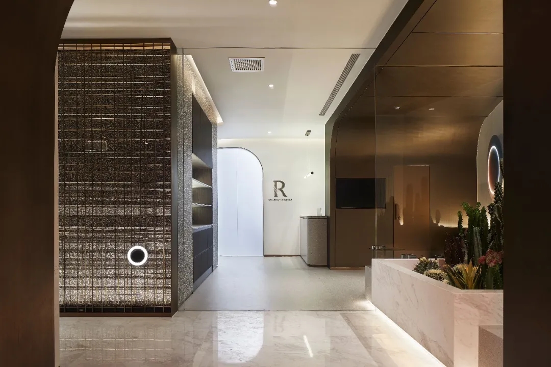 为了减少材质的运用,整体设计简洁干净 齿科公区利用几个弧形体块的穿插体现趣味性