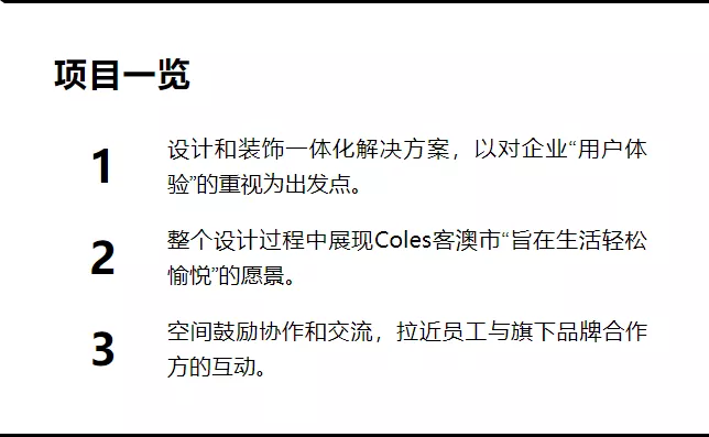 EDS Interior's emphasis on enterprise "user experience" is the starting point, and we look forward to applying this concept to Coles Shanghai office. We aim to create a modern, relaxed, stylish and functionality office space.