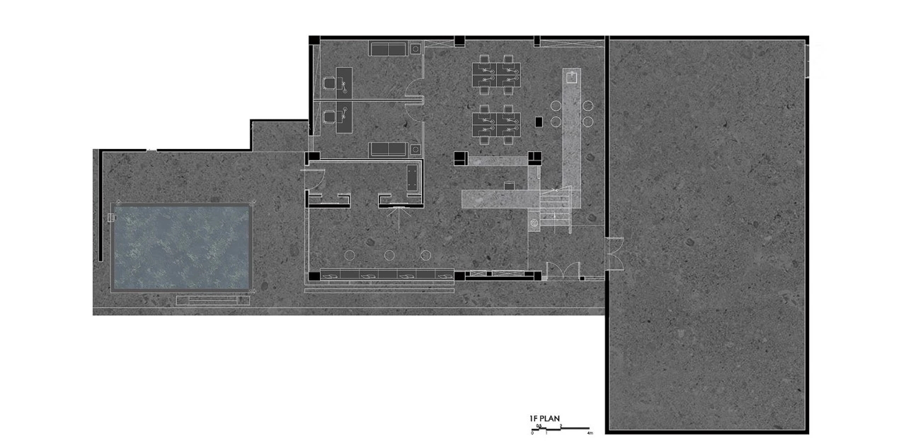 为了让这出景观在无形中融入日常,传统厂区的入口路径也被打破,将入口设计在建筑左侧,经由水池景观再进入企业,让每个人都能潜移默化地浸入这处静谧的景象中,沉淀平和心境。