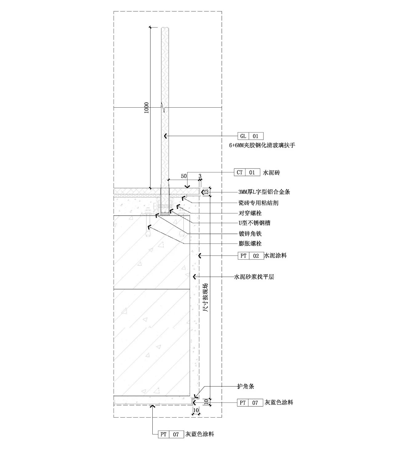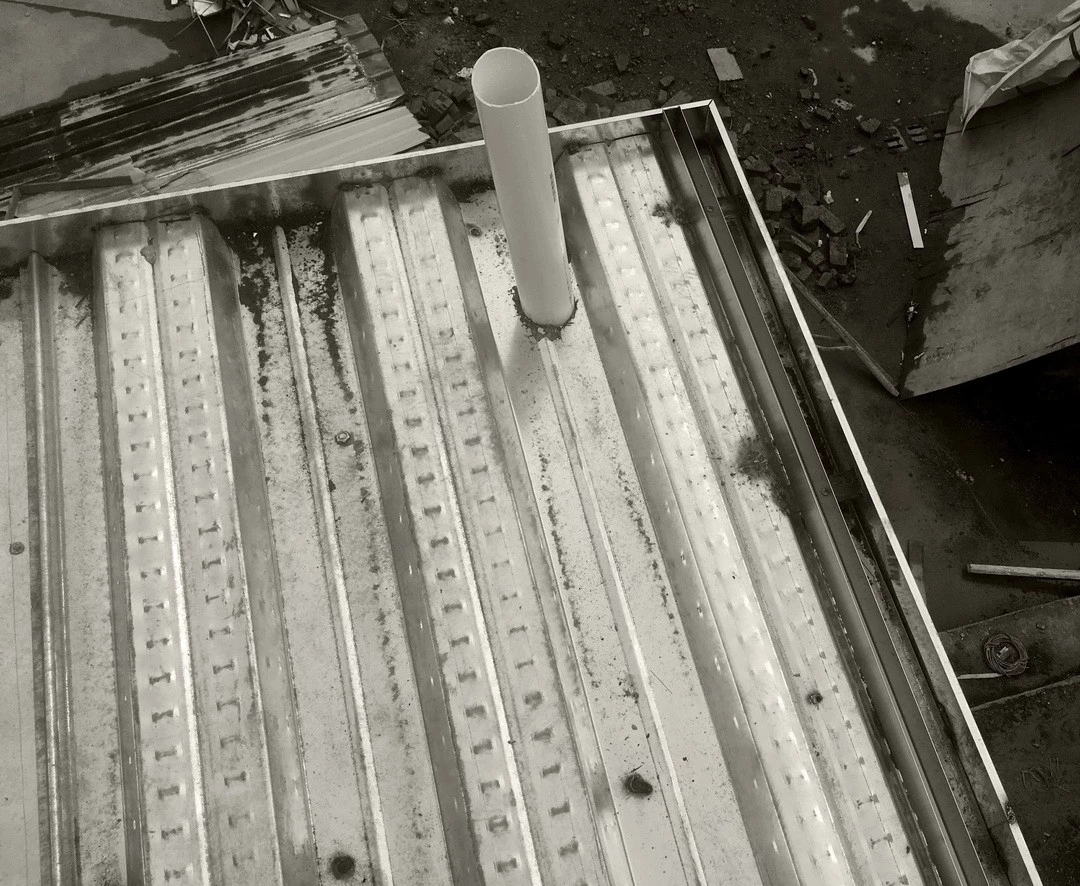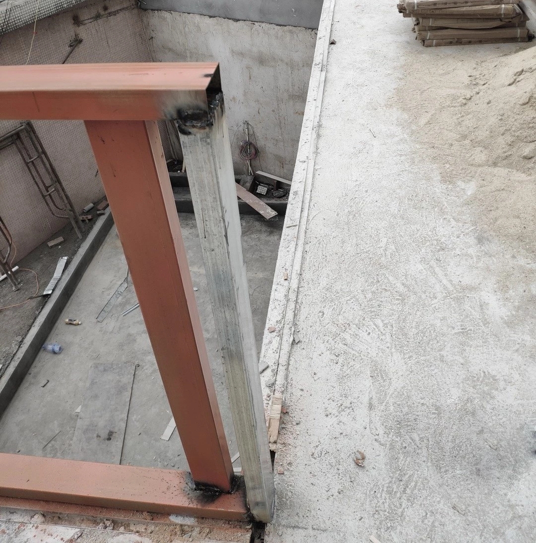 ▲在钢结构楼板上预埋玻璃栏杆固定构件