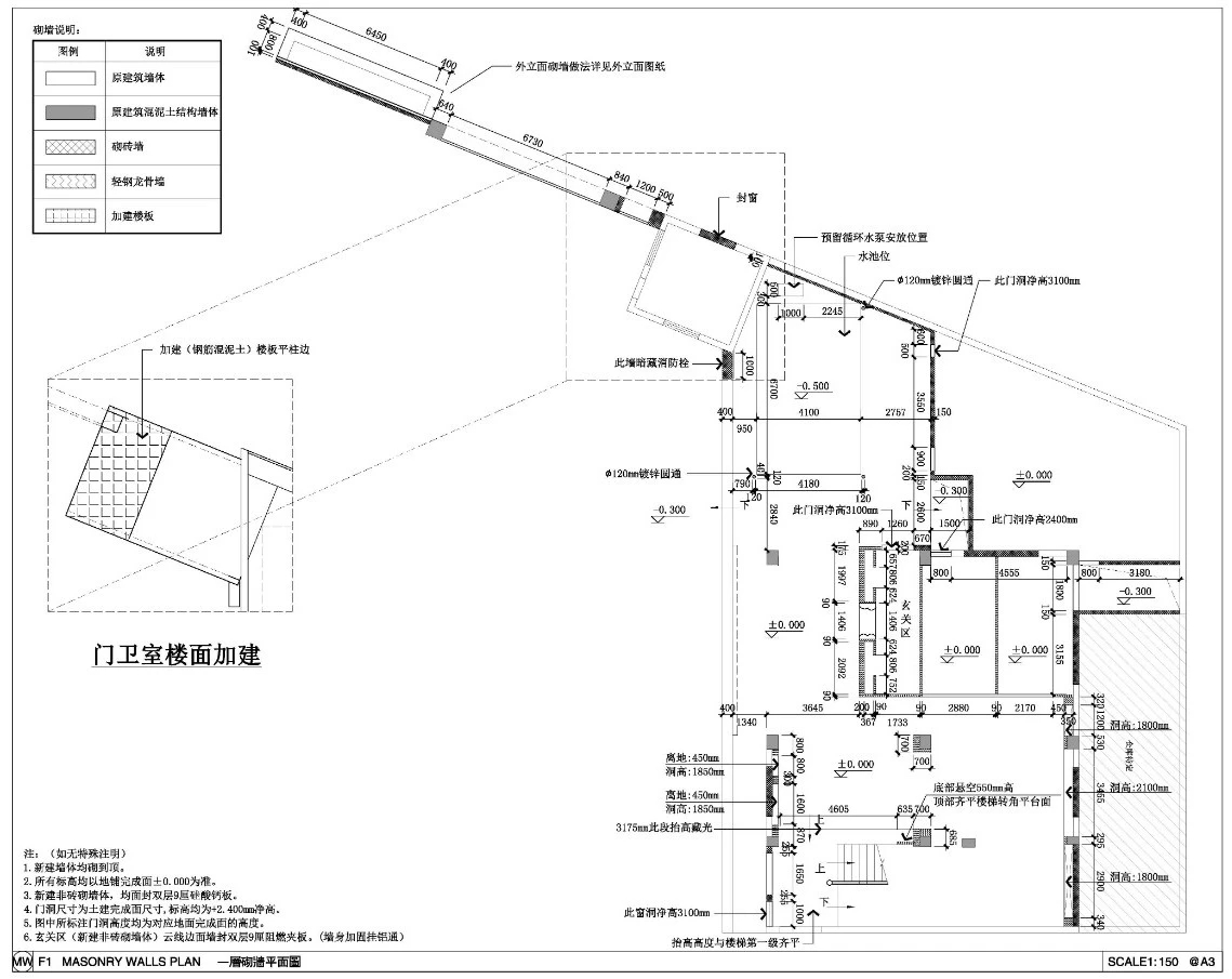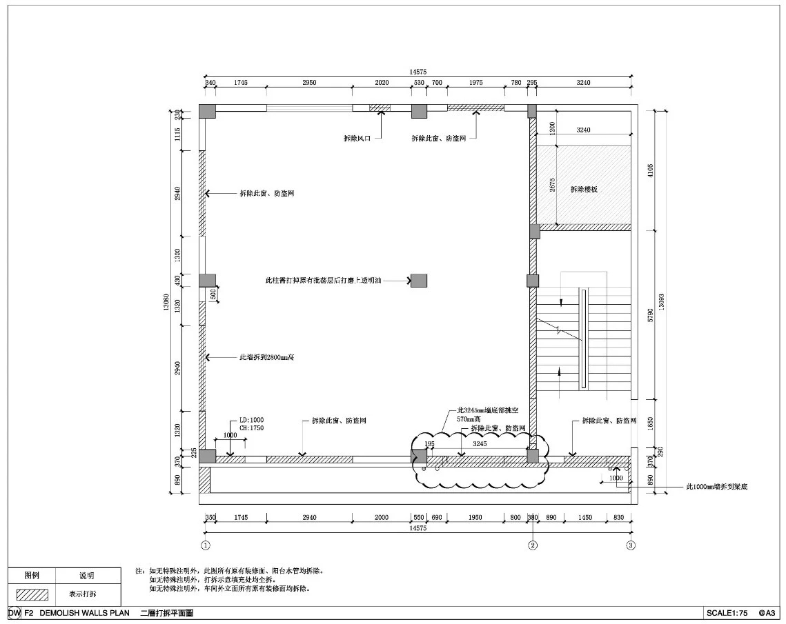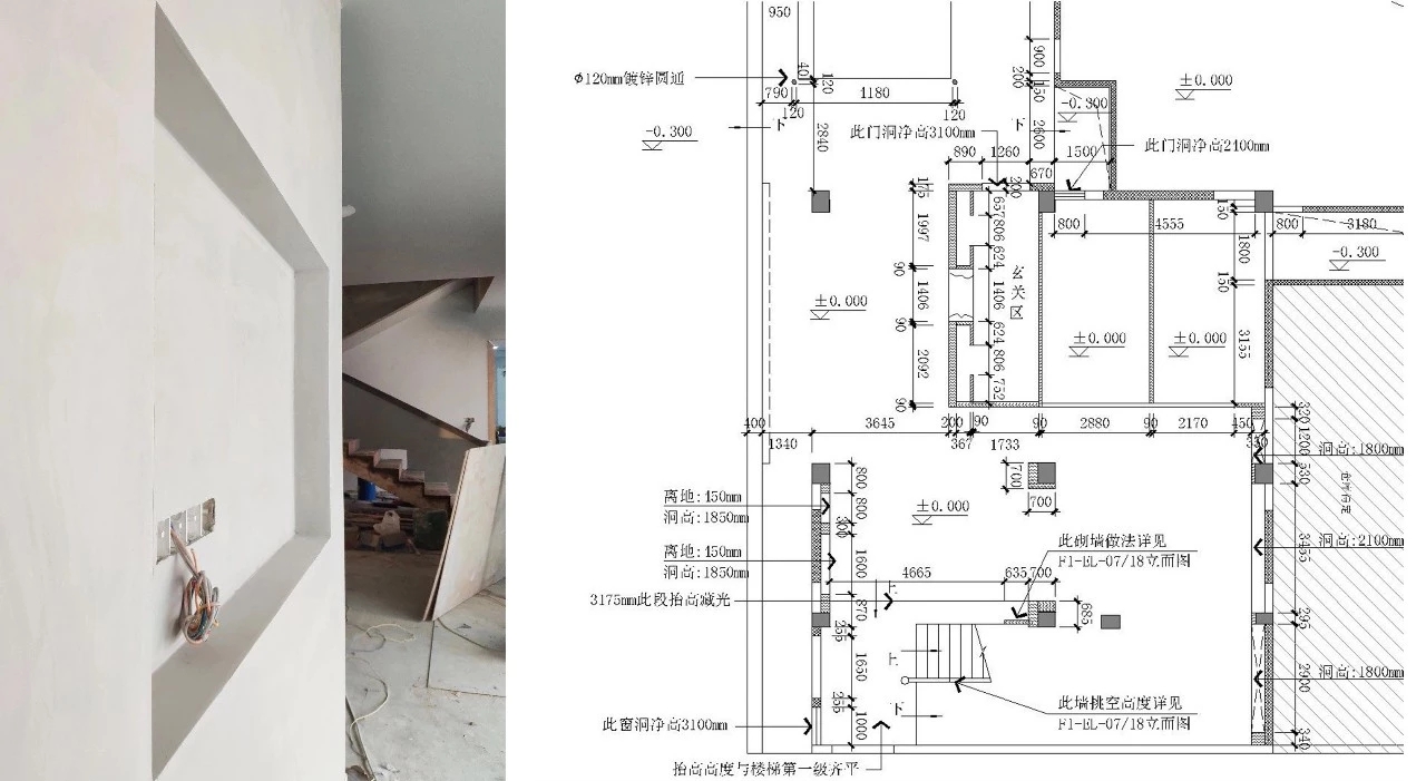 室内有较多墙体需要在原来基础上进行二次改造。例如镂空,因此需要在拆墙砌墙上引出说明,结合立面清晰的表达出具体关系结构。