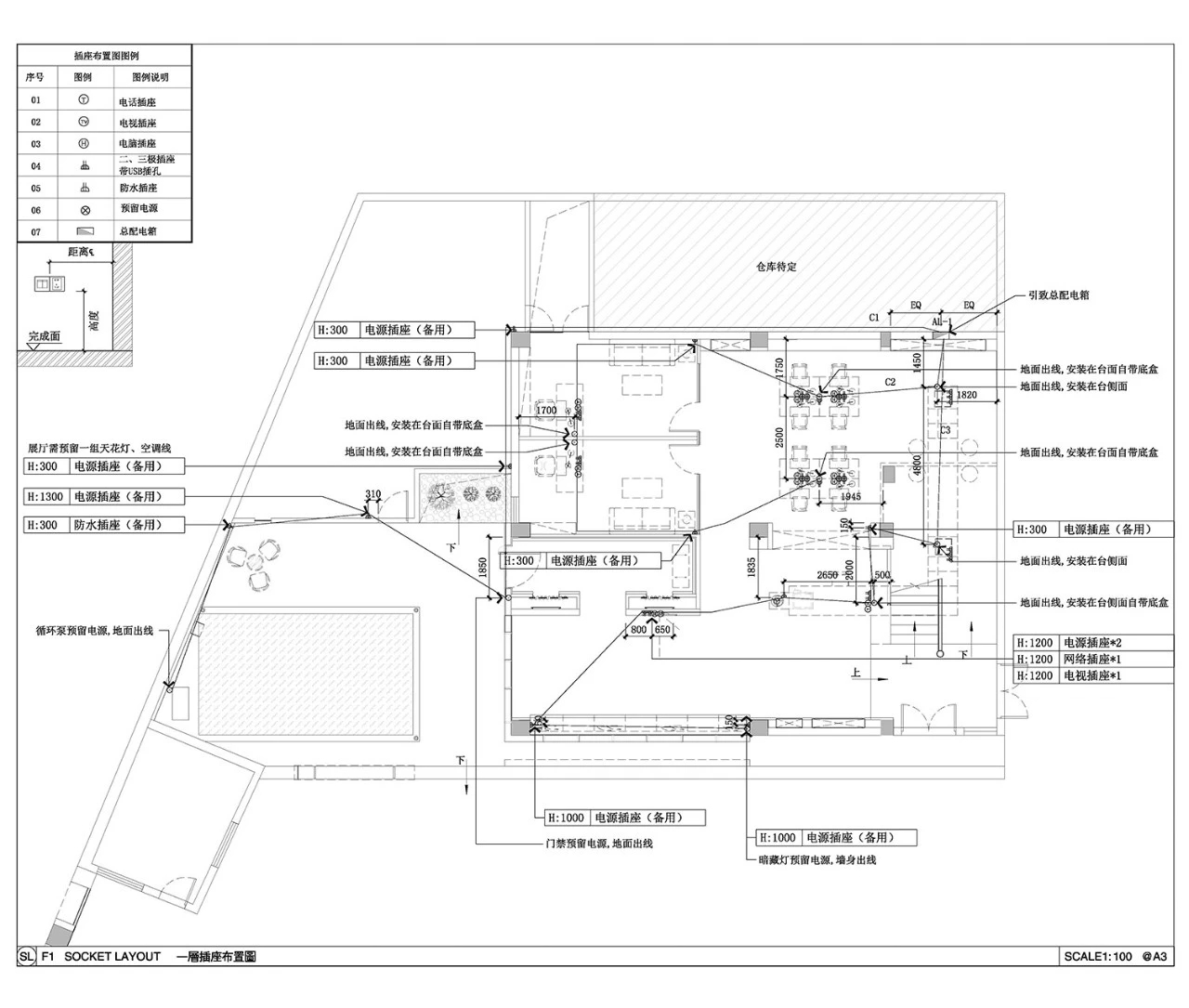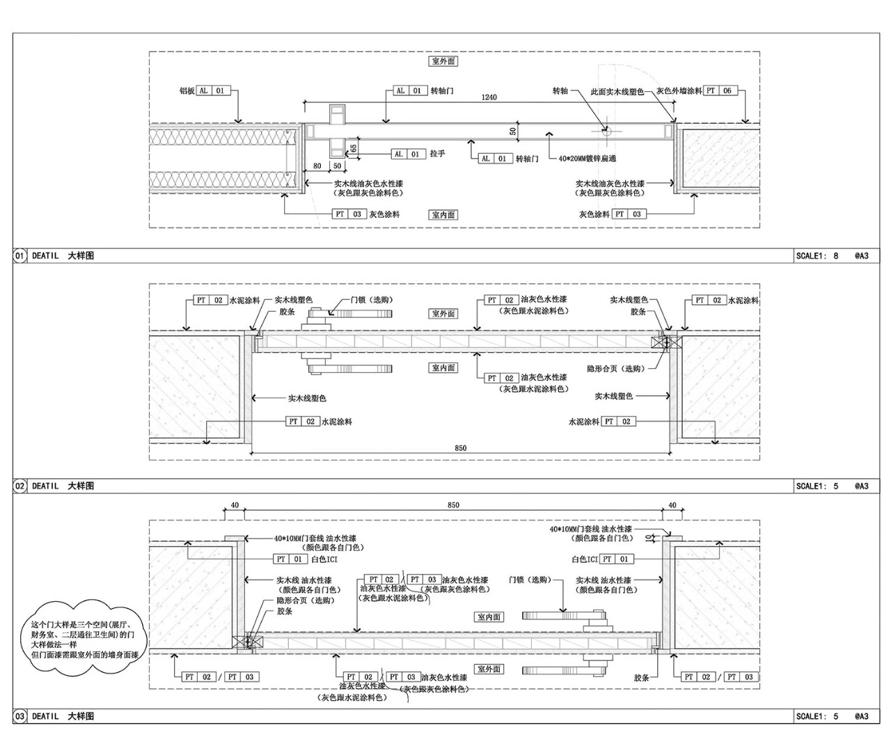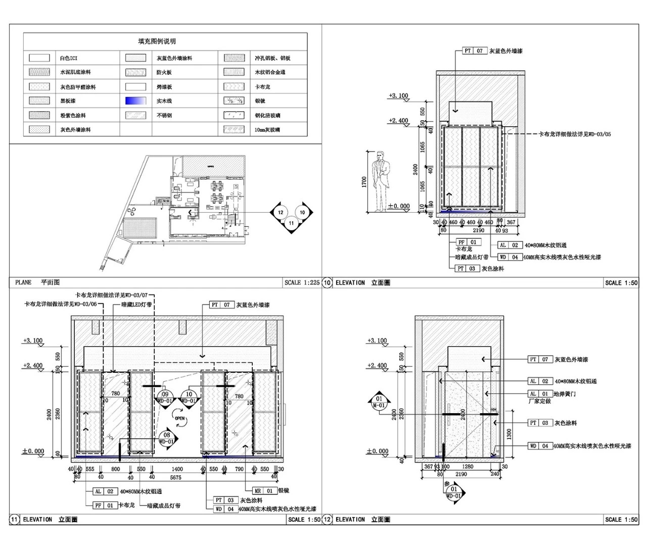 室内有较多墙体需要在原来基础上进行二次改造。例如镂空,因此需要在拆墙砌墙上引出说明,结合立面清晰的表达出具体关系结构。