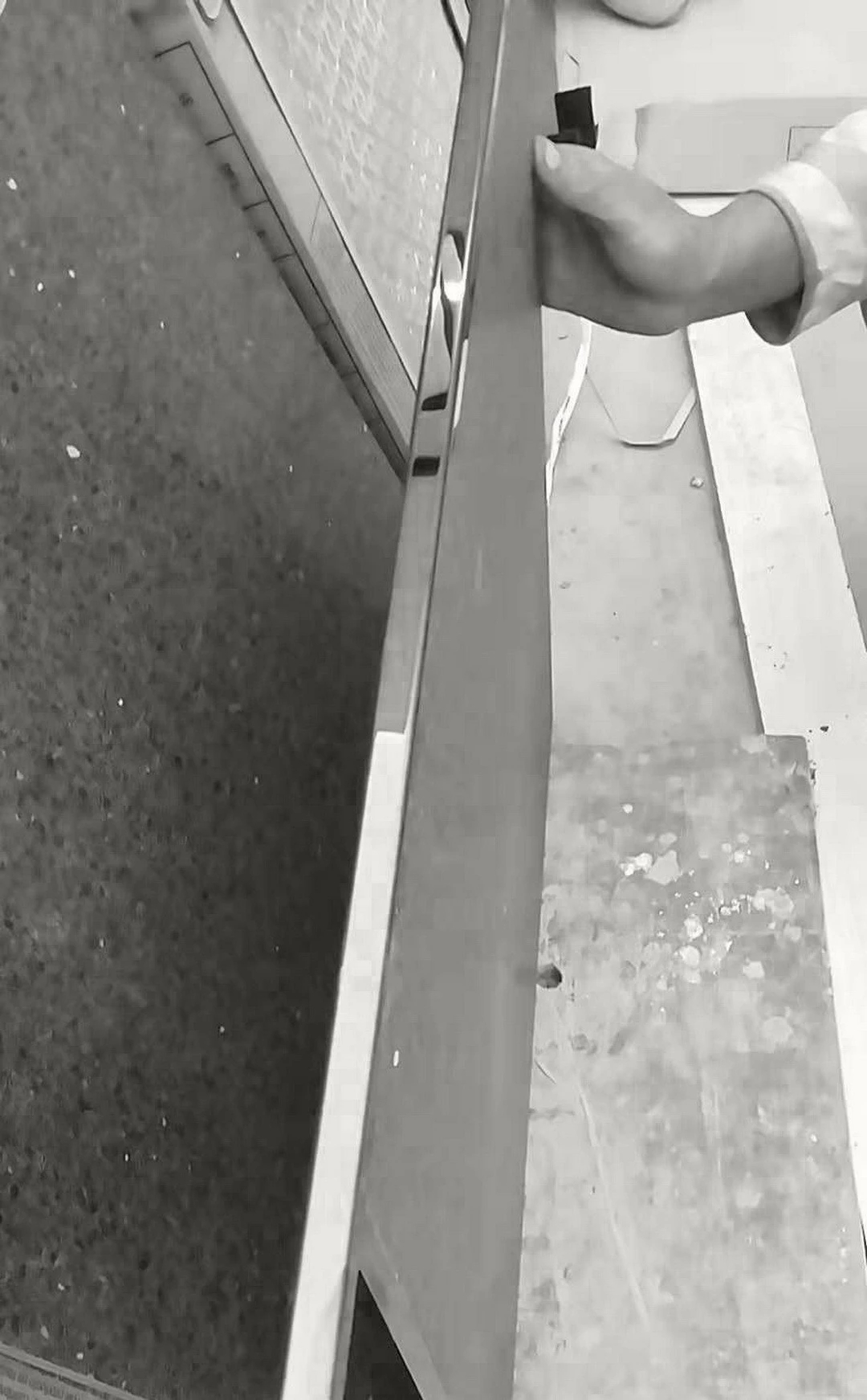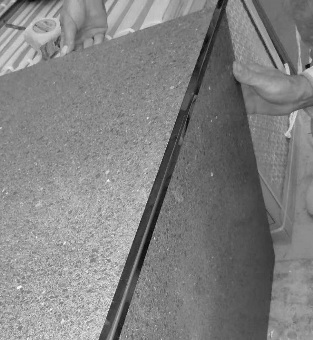 ▲现场师傅根据图纸现场制作不锈钢收边条
