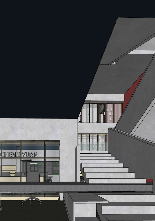 空间重构:室内层级间关系断层,缺乏整体性,无法满足办公使用要求下的空间关系。
