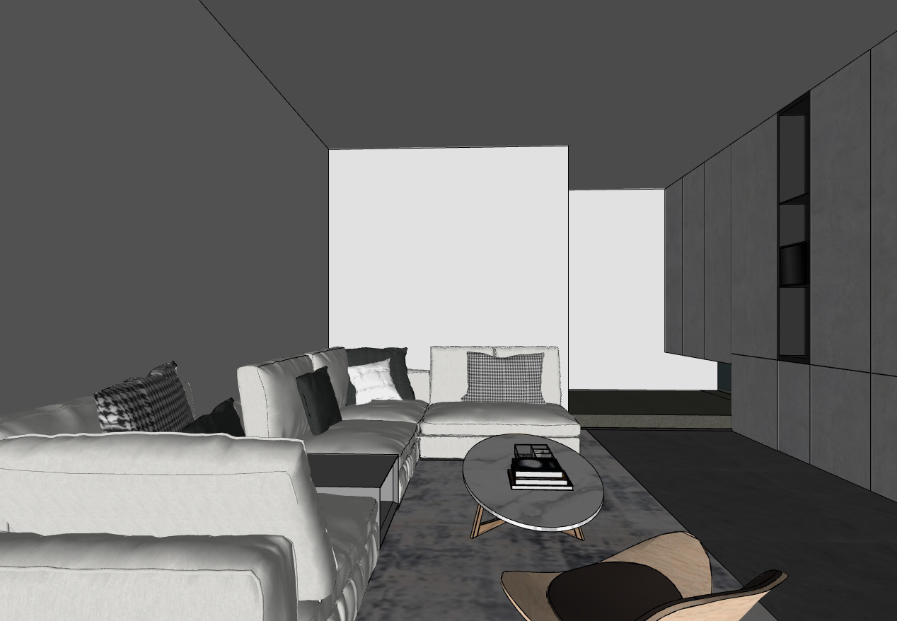此处为休息区的嵌入式电视机墙体,我们需考虑电视机外观尺寸,安装背架款式及受力重量,计算后得出墙体需要砌筑的厚度,并要求施工方增加两条轻钢龙骨架加固电视背板。