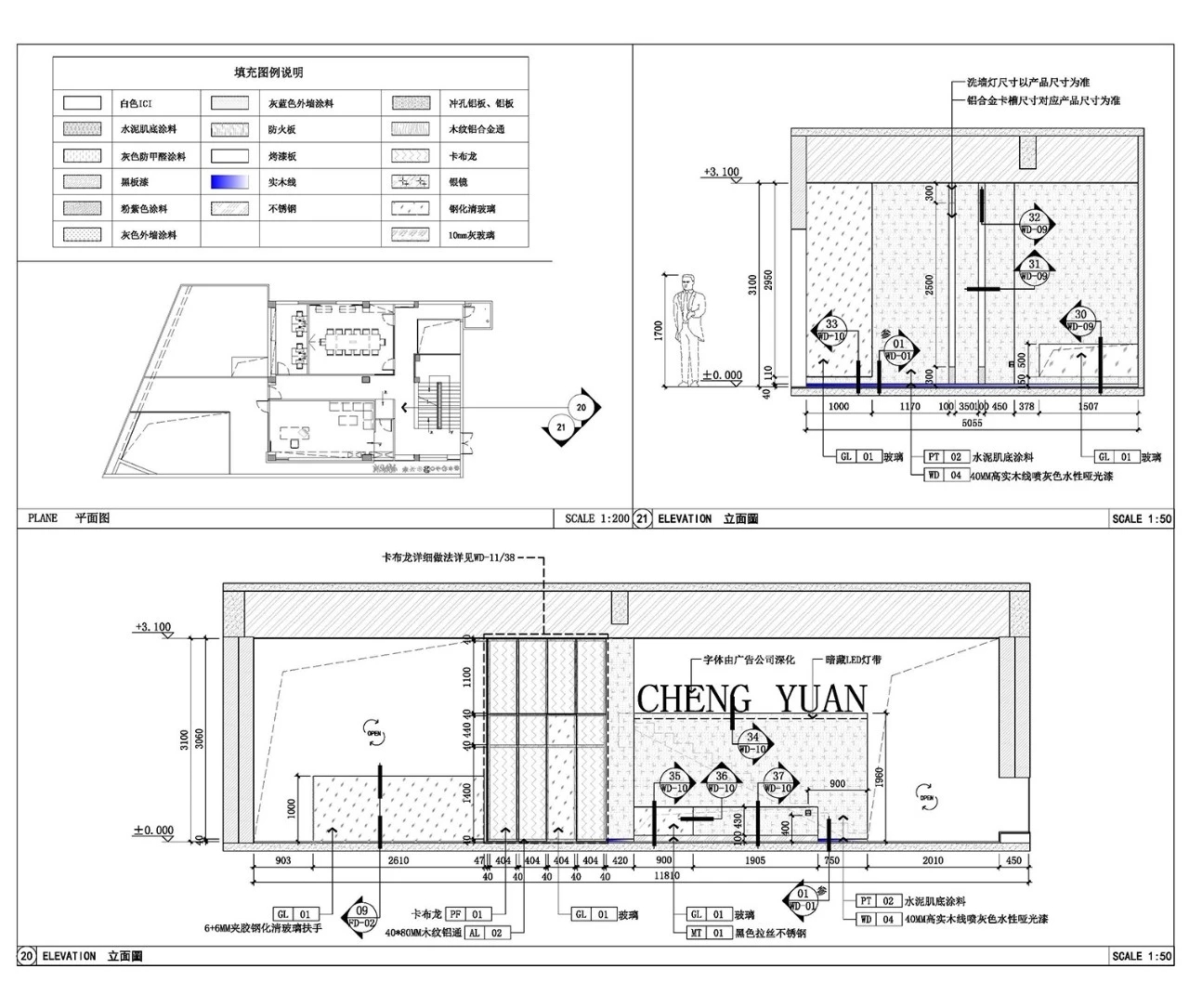 主要材料: TOA涂料、费罗娜水泥砖、卡布隆、冲孔铝板