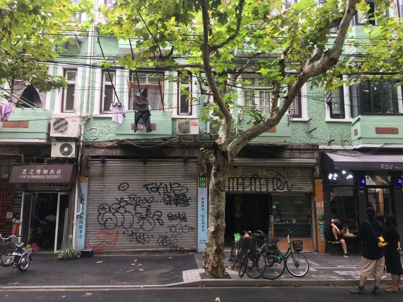 路两边是茂密的梧桐树叶,透过树叶依稀可见的是红白相间的窗户,阳台外面伸出去的长杆上是随意晾晒的衣物,隔壁是一间老裁缝的制衣店,“这才是上海街巷最真实的写照。”这是对话中印象最深刻的,也是测量现场最直接的描述。