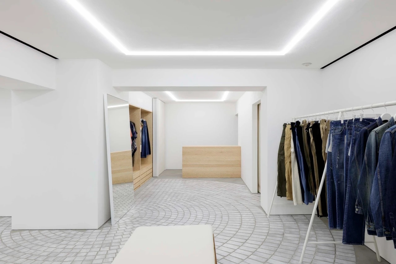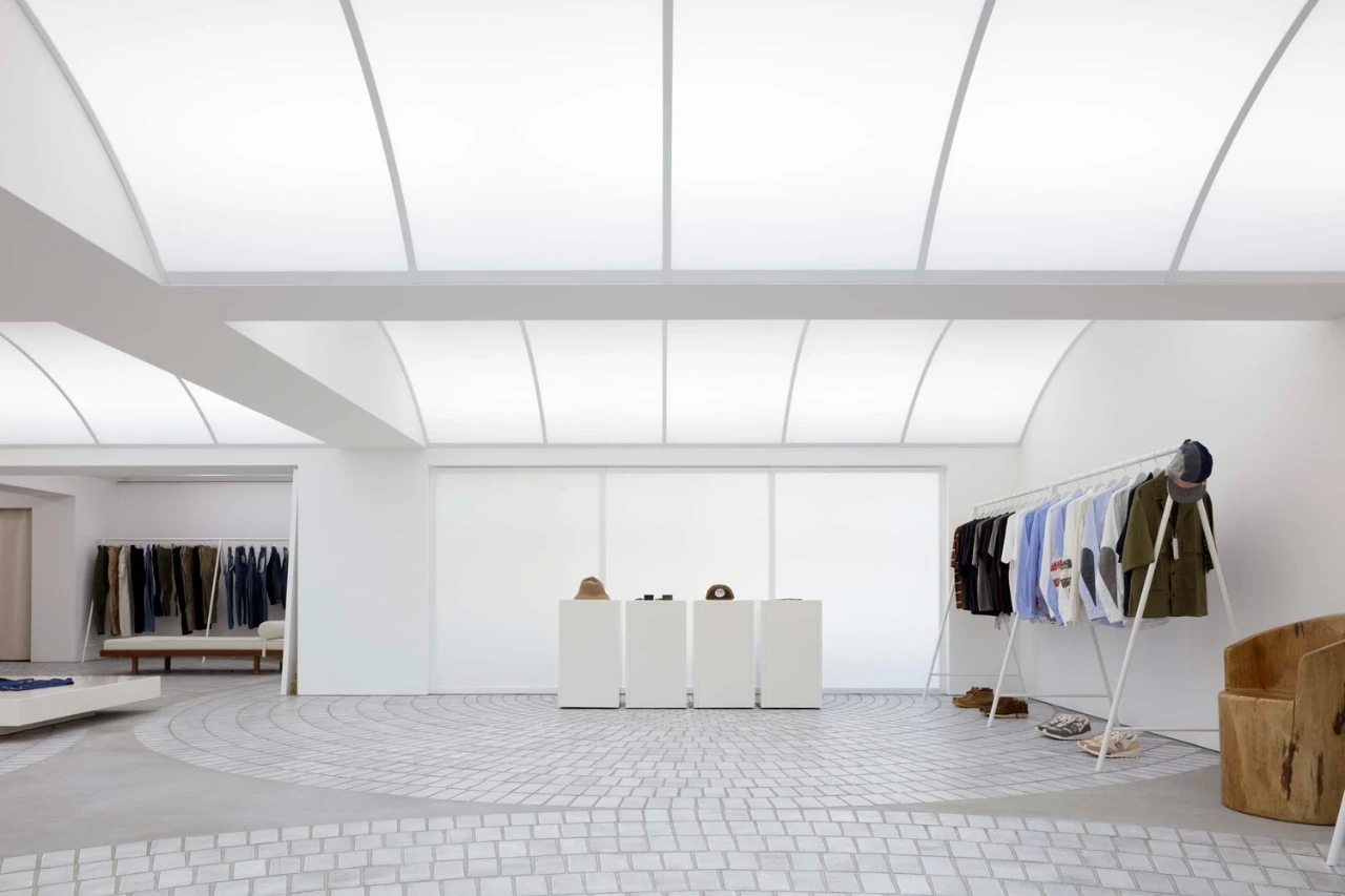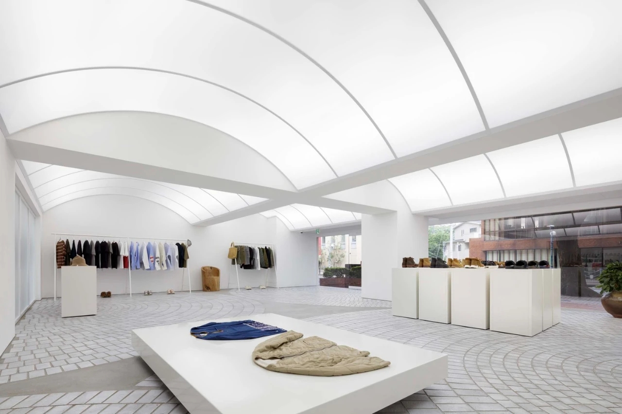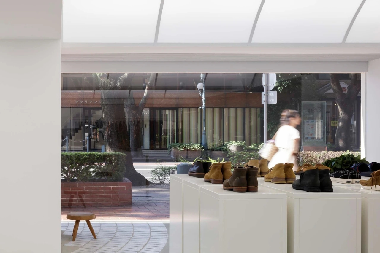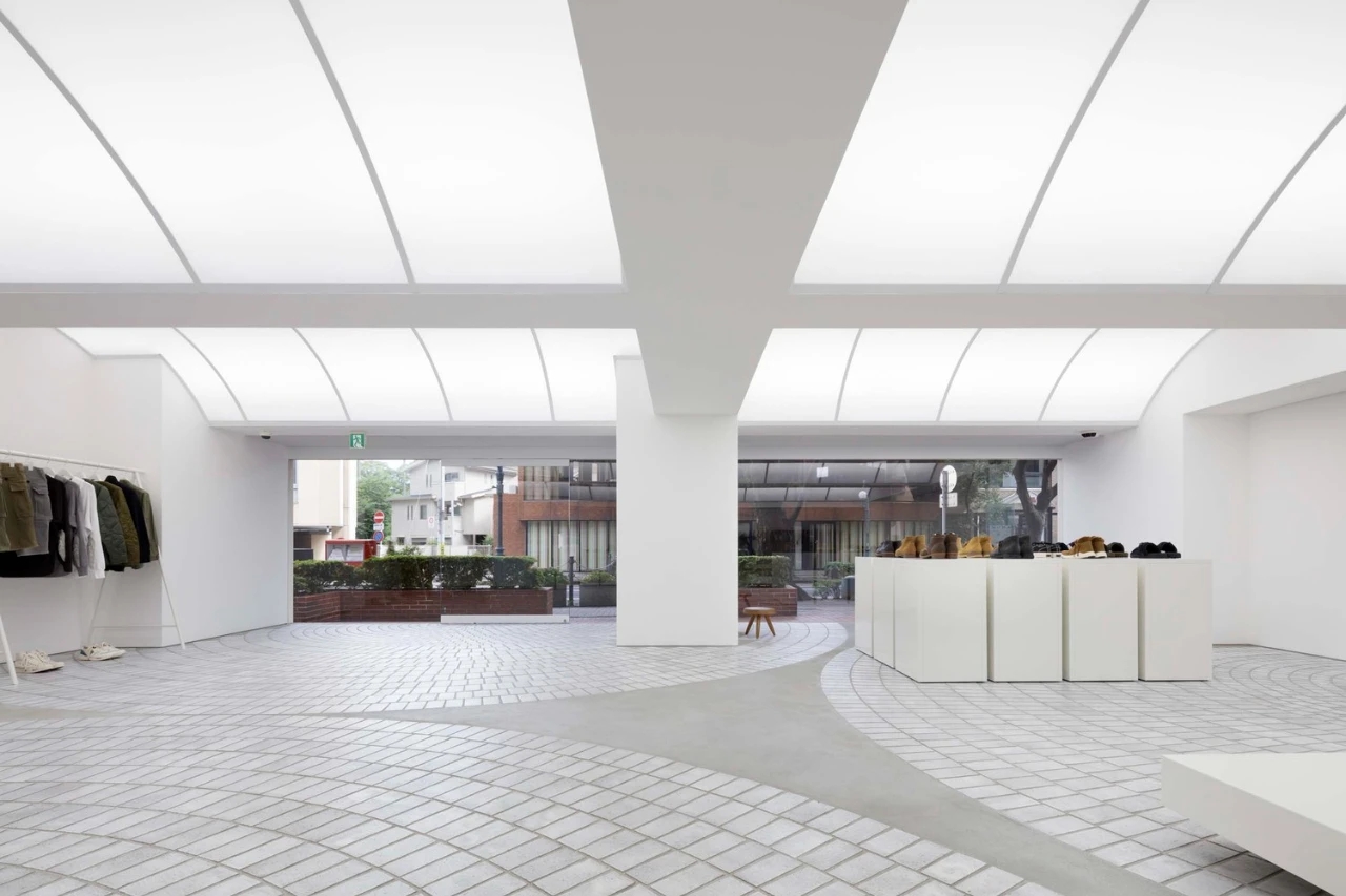 日本时尚品牌“ visvim”旗舰店的商店设计。商店面向宁静的街道,上面种满了一百棵采尔科娃(Zelkova)树木和砖砌人行道。沿着这条街站立的老式公寓与宁静的城市景观相匹配,附近还有由Kunio Mayekawa设计的博物馆,博物馆拥有优雅的拱形天花板和砖砌外墙.