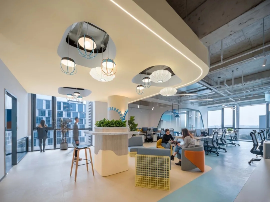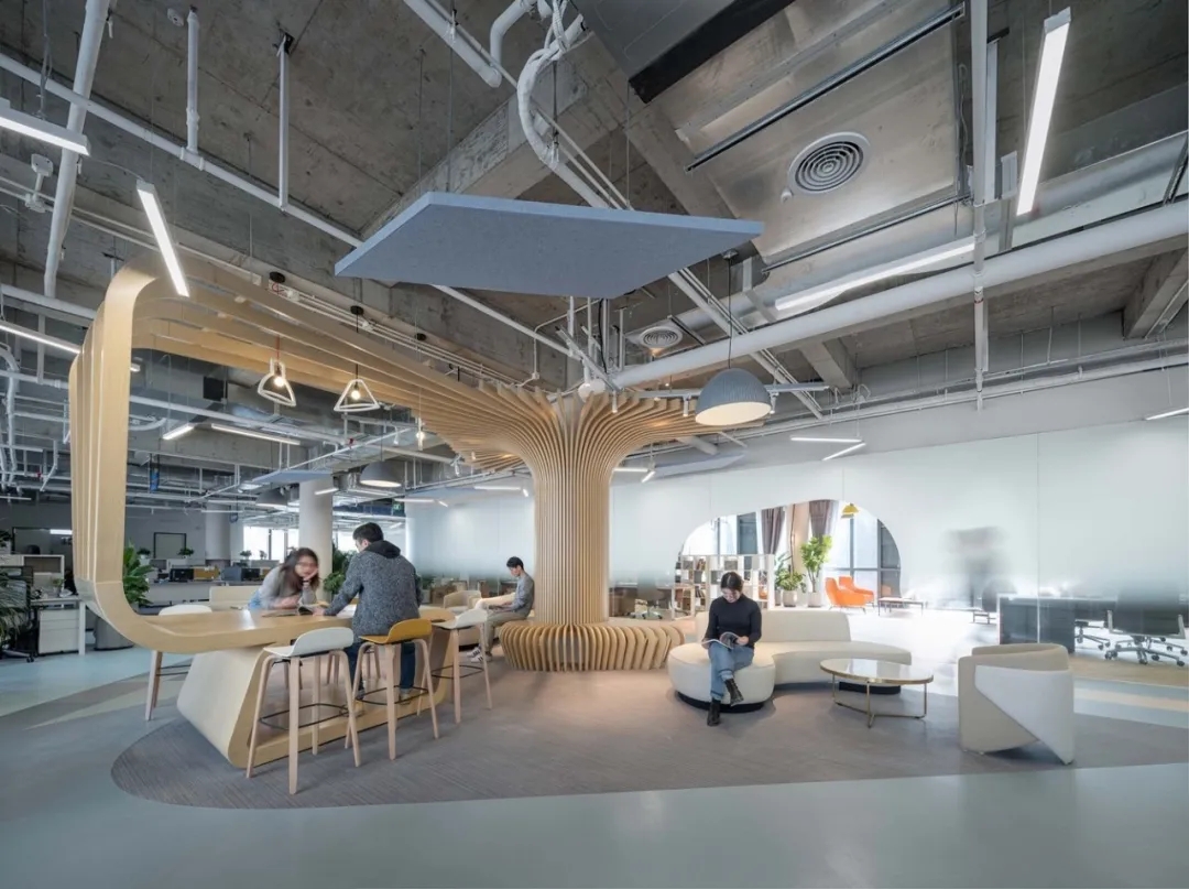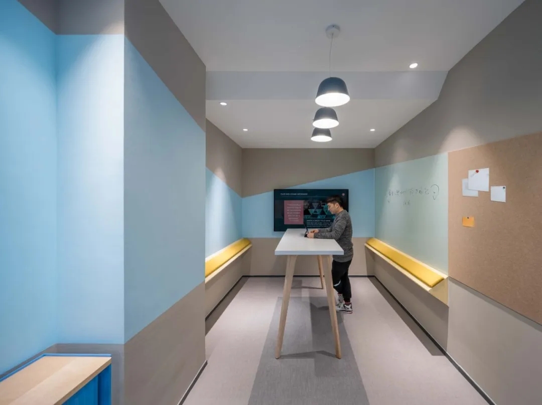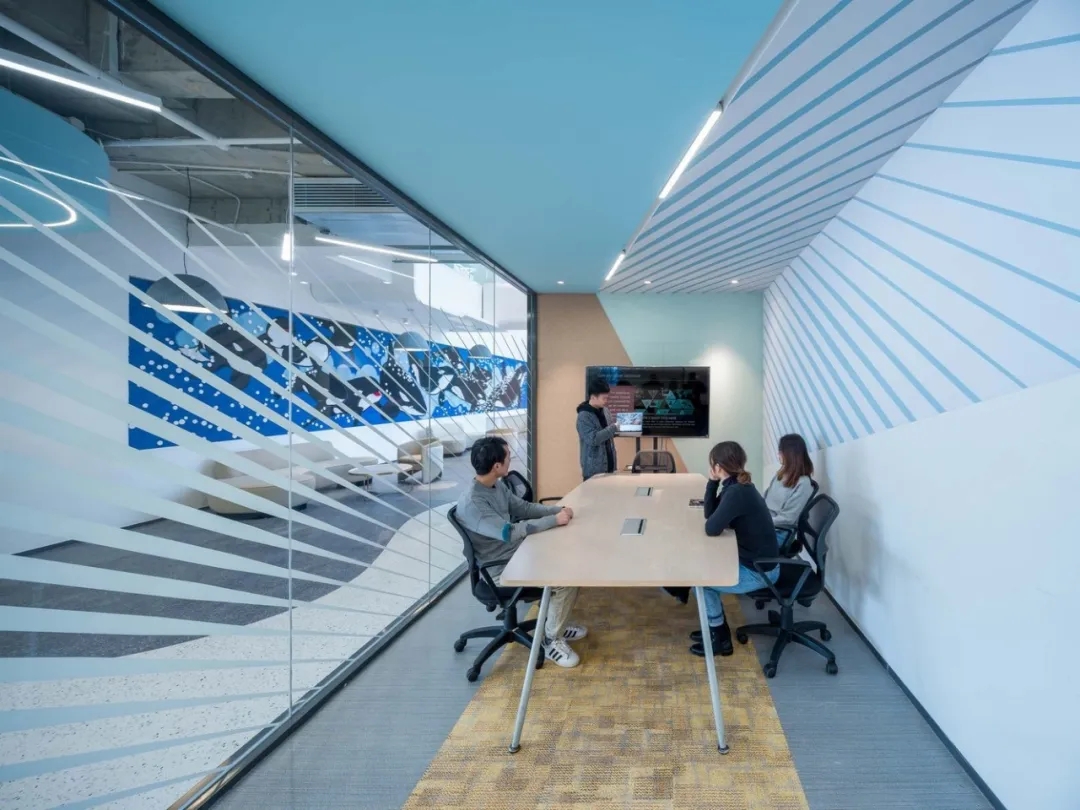值得一提的是,从所有办公室中的任意工位出发,走到最近洽谈区域的距离都小于25米,让员工不再每日绑定在自己的工位上,可以在其他区域,用更灵敏便捷的方式去工作。