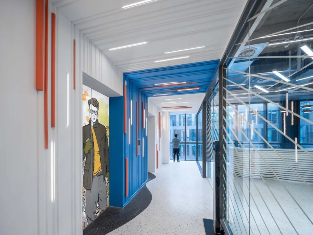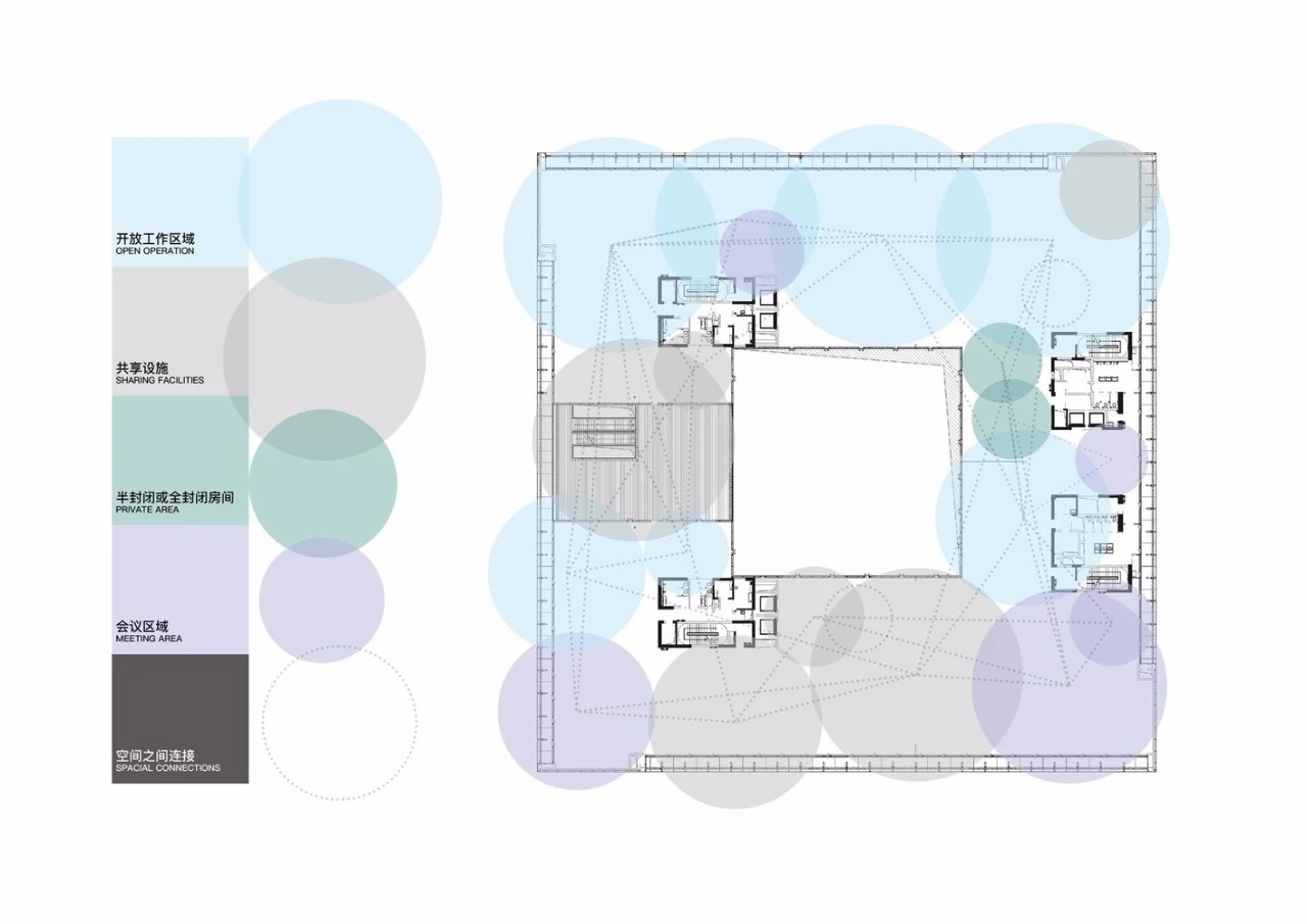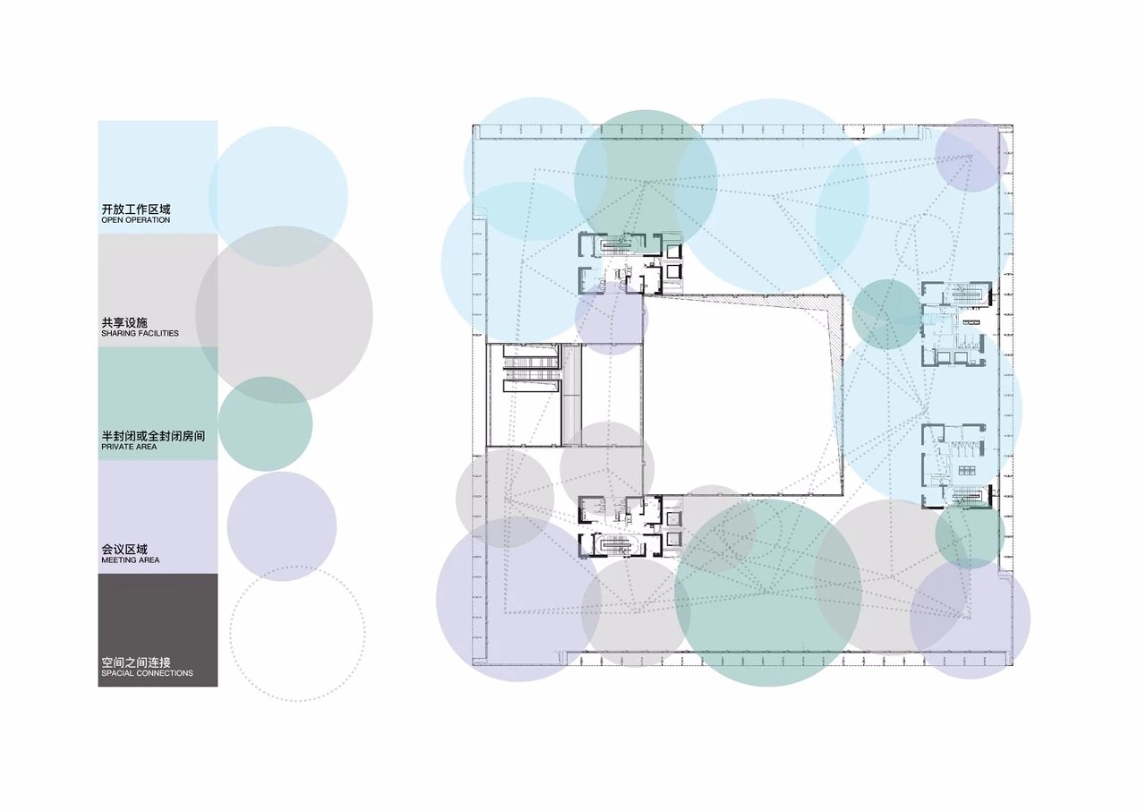 值得一提的是,从所有办公室中的任意工位出发,走到最近洽谈区域的距离都小于25米,让员工不再每日绑定在自己的工位上,可以在其他区域,用更灵敏便捷的方式去工作。