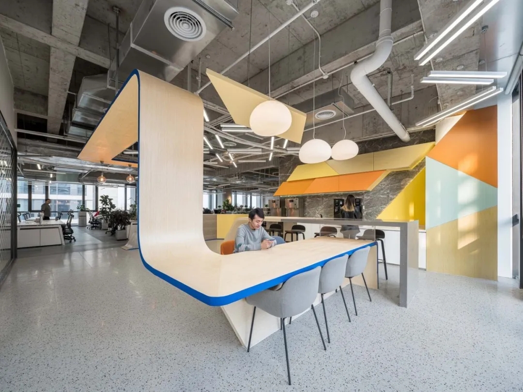 除了会议室,工作环境基本是开放式无边界的,配合活跃而跳TONE的色彩搭配,有利于激发员工的灵感与创意。帮助员工始终以最饱满的状态进行工作。