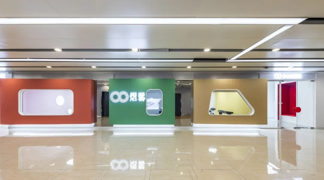 红、绿、金三个颜色明亮、大小不一的长方形盒子位于熠馨音乐艺术中心的入口,就像三个情绪欢脱的音符。