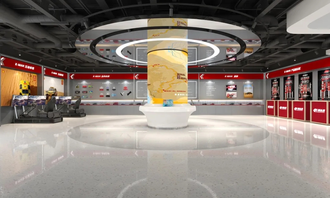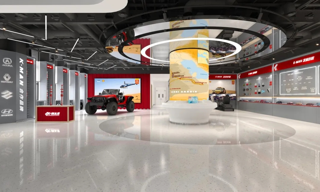 逼真的场景是吸引的关键,带有自然的张力。觉木带领人们回到原点,入口处从减振器载体本身这个概念出发。通过场景化装置的突出效果,把越野车“解剖”,让产品和载体的关系一目了然。