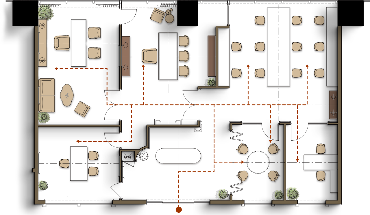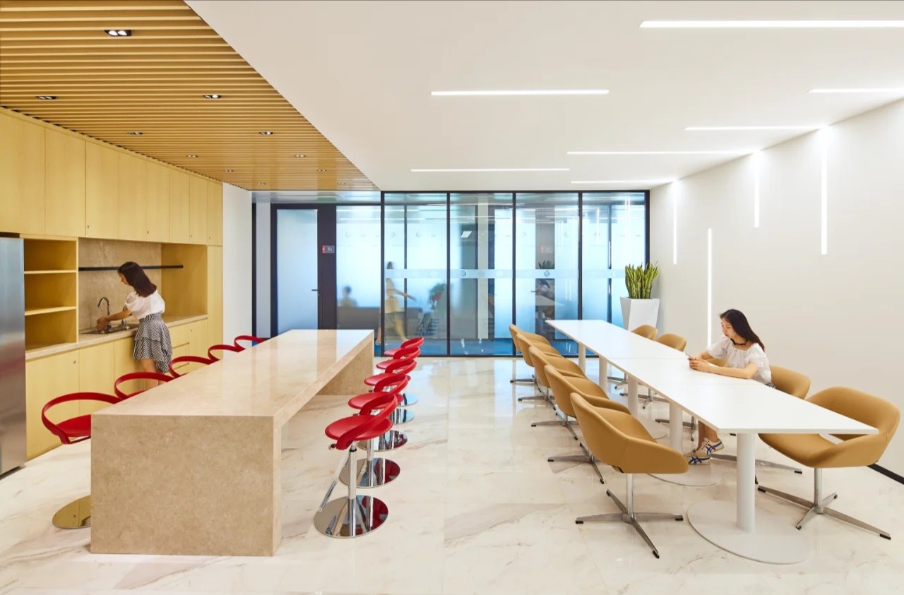 方形:打破传统,无等级制度的平等贡献与分享长方形代表我们的工作区域,在长桌上大家一起工作与分享生活,更好地加深公司员工之间的凝聚力,让团队感受到在合作与贡献上的平等互助。