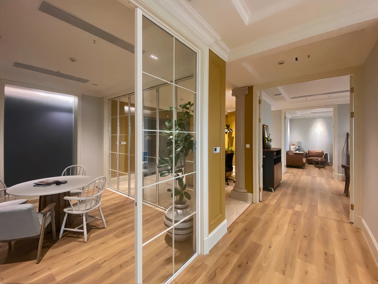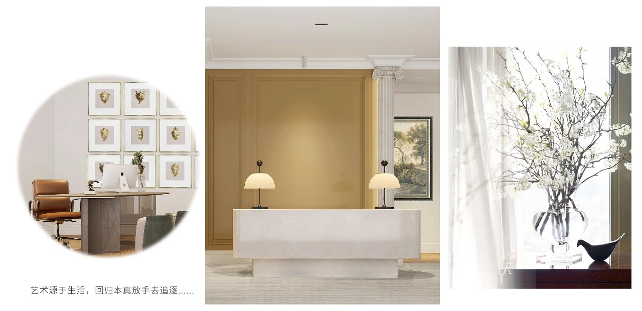我们摒弃传统办公空间以功能为主的设计手法,不局限单一的装饰风格,注入艺术感的自然元素,给予空间更多与自己对话的可能性。用经典美感、柔和的色调、艺术的感染力,让空间充满戏剧性,感受美好和对生命的热爱