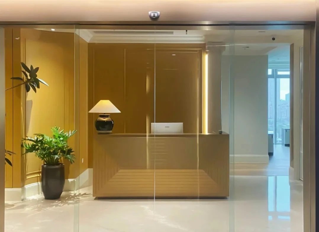 两层楼高的入口玄关区域是我们的生活区和迎宾区。以圆形不锈钢咖啡桌为中心,无形连接起了一个可以接待宾客、展开商务洽谈、举行小型活动或与团队、朋友和客户聚会的多功能空间。