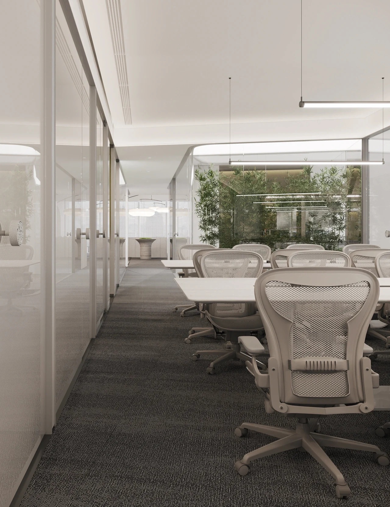 开放工位的规划是我们秉持人性化管理理念的重要一环,我们将工位放置在核心采光区域,以便让员工能够享受到充足的自然光线。初心旨在让员工感到愉悦和专注的同时,工作效率和创造力也能进一步得到提升。