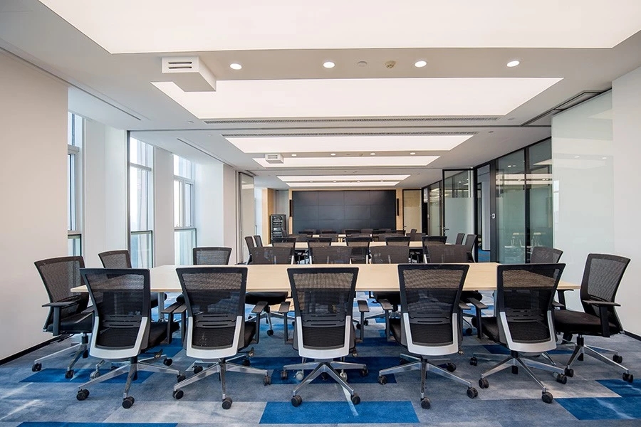 通透的玻璃幕墙,当阳光落进来,让整个空间充满了温情和舒适感,打破沉重而严肃的气氛。创造能提升人际互动的空间,大会议室采用移动培训桌组,极具灵活性,满足各种会议模式的需求。