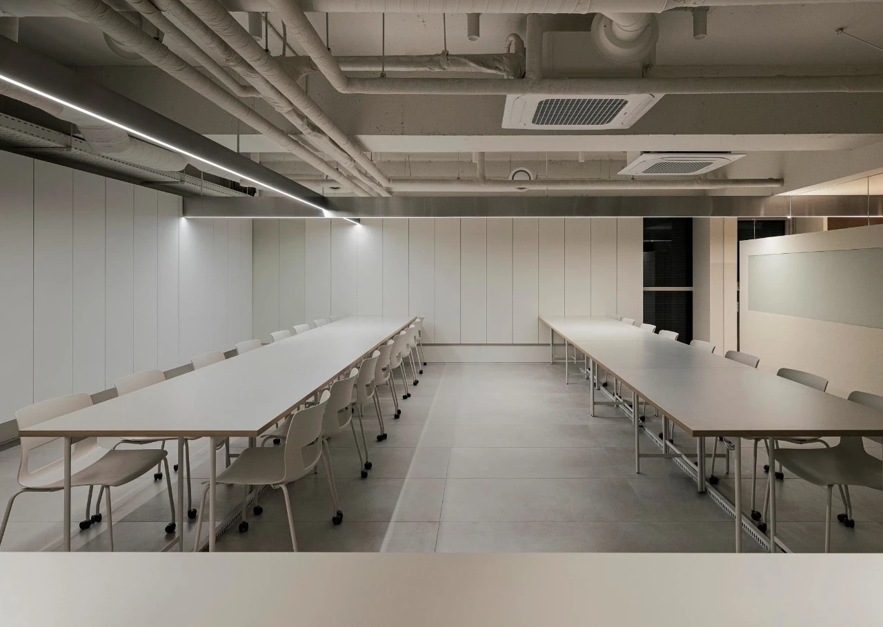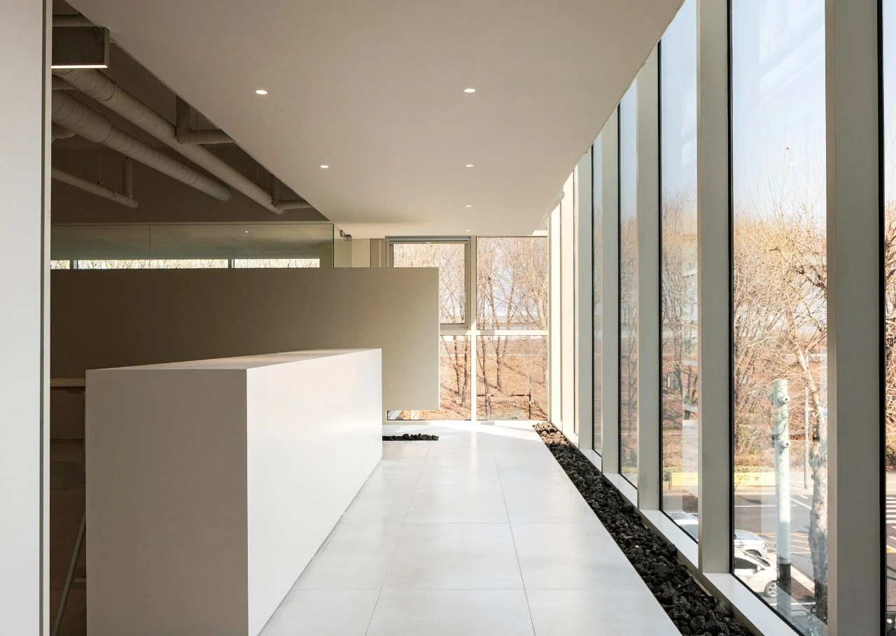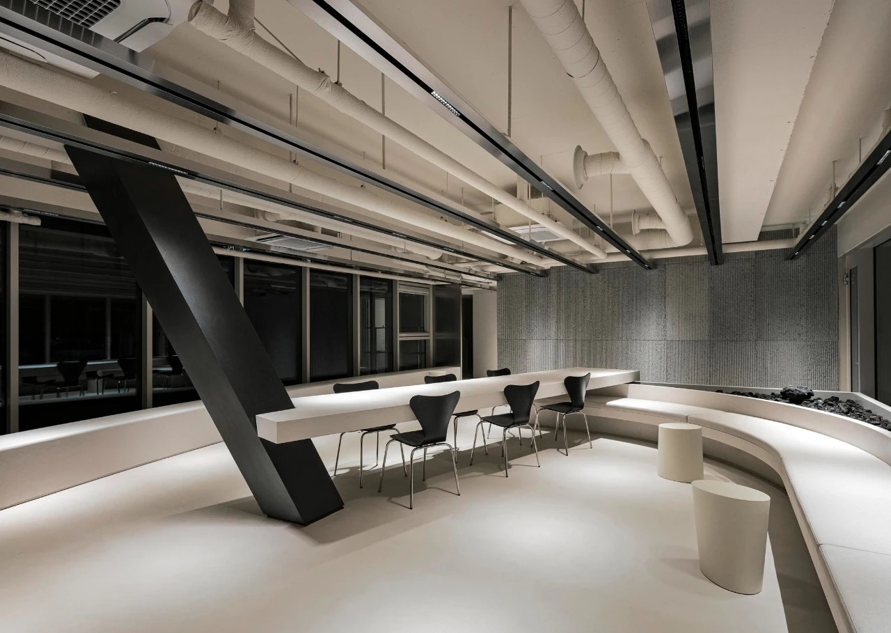 Entertainment Office 是一个动态的空间,静止与速度共存,所有的流动都交叉和连接——自然、人类和交通存在于建筑物之间。通过方形的体量和垂直的建筑设计,将周围多样的流线无缝地引入室内,以“线流”的概念连接内部和外部。