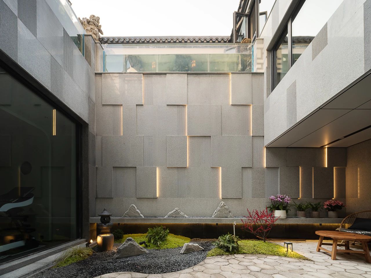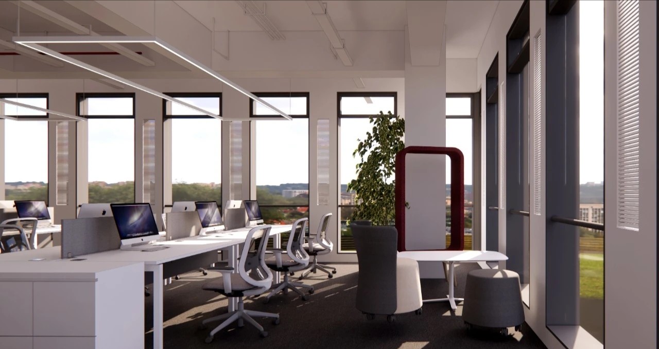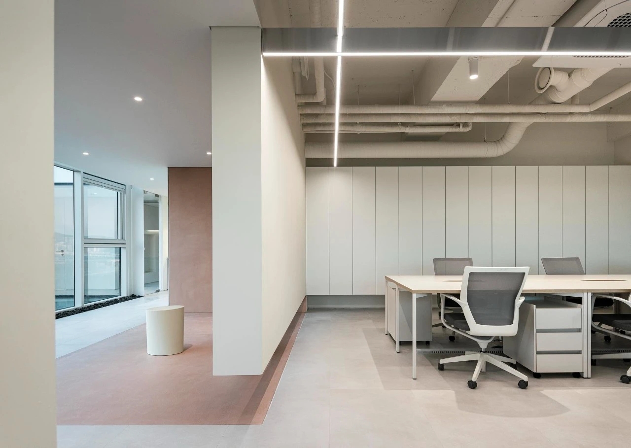 Entertainment Office 是一个动态的空间,静止与速度共存,所有的流动都交叉和连接——自然、人类和交通存在于建筑物之间。通过方形的体量和垂直的建筑设计,将周围多样的流线无缝地引入室内,以“线流”的概念连接内部和外部。