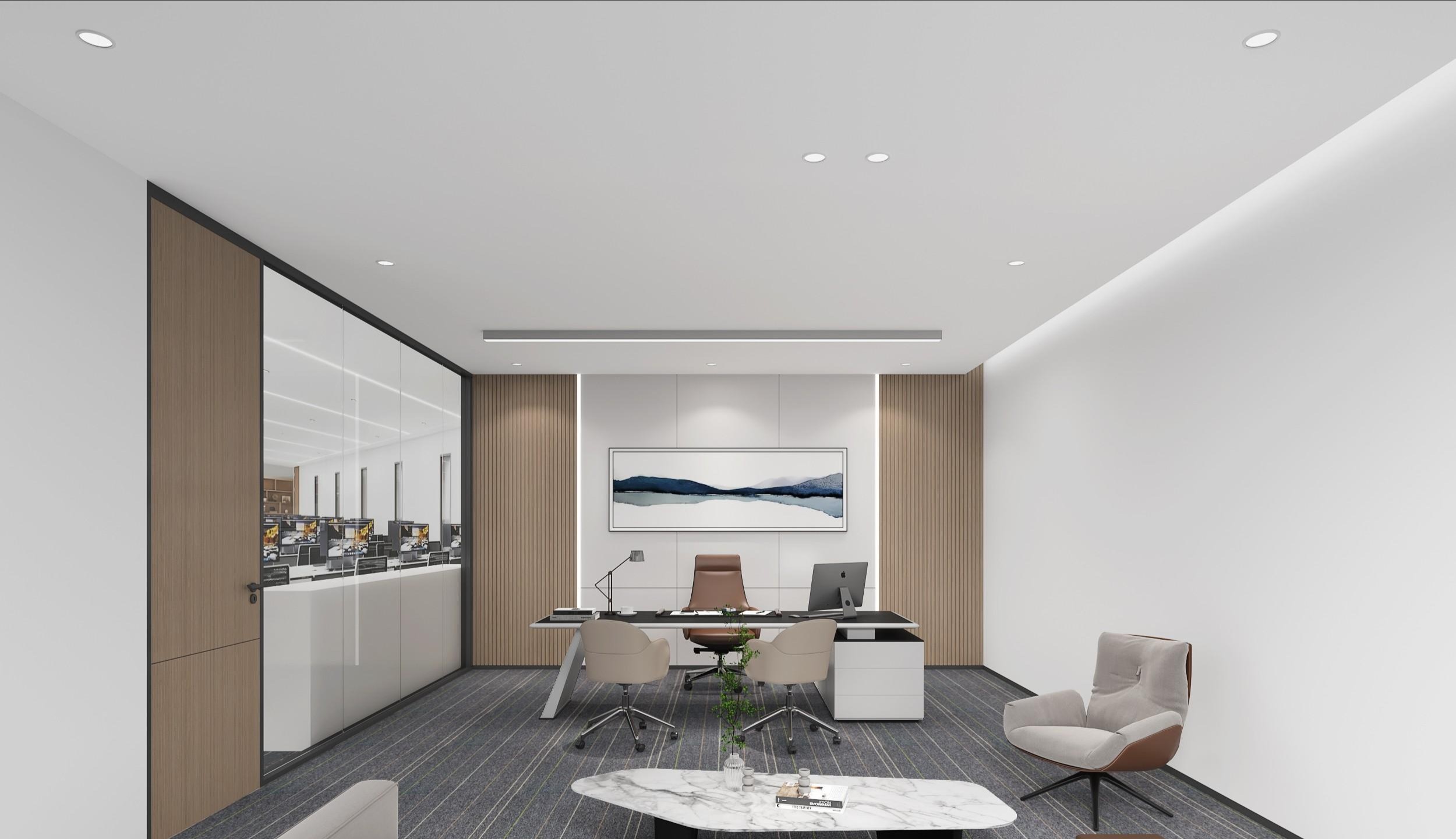 董事长办公室巧妙地将企业品牌蓝色元素融入其中,色彩靓丽典雅,这不仅展现出现代化的办公理念,还充分体现董事长的品味与格调,整个空间科技感十足,时尚而不失个性,每一处细节都彰显着企业前瞻性和创新精神。