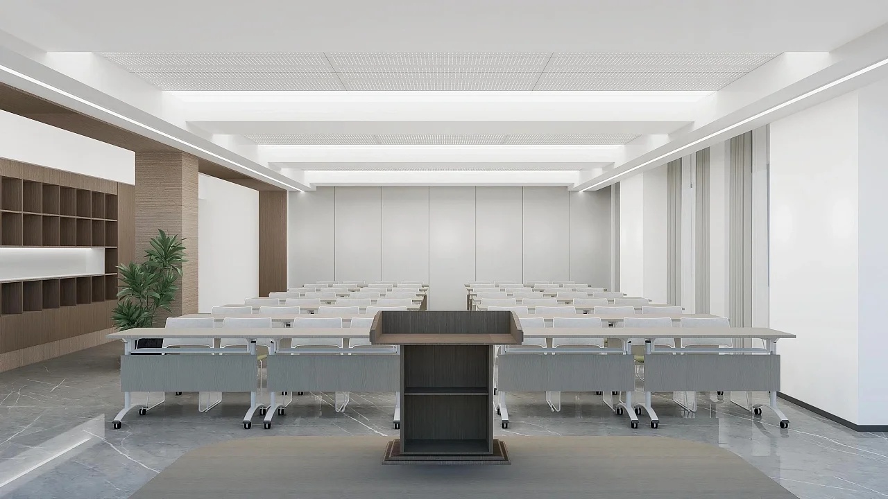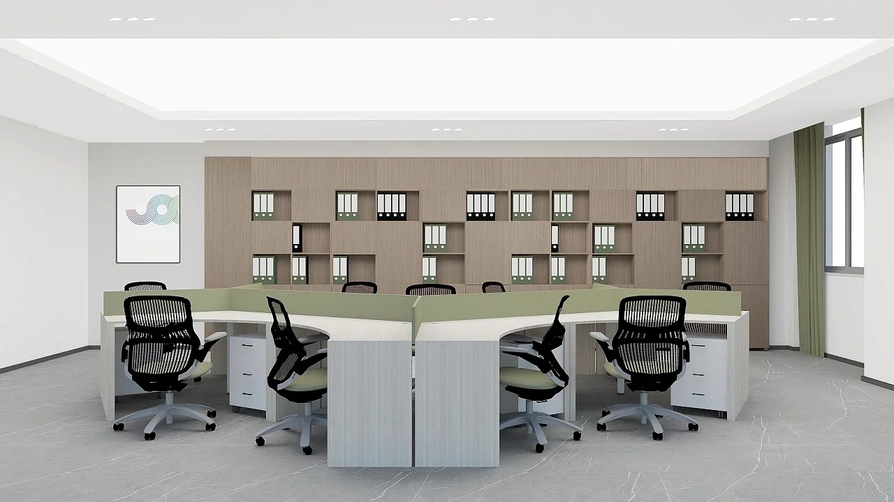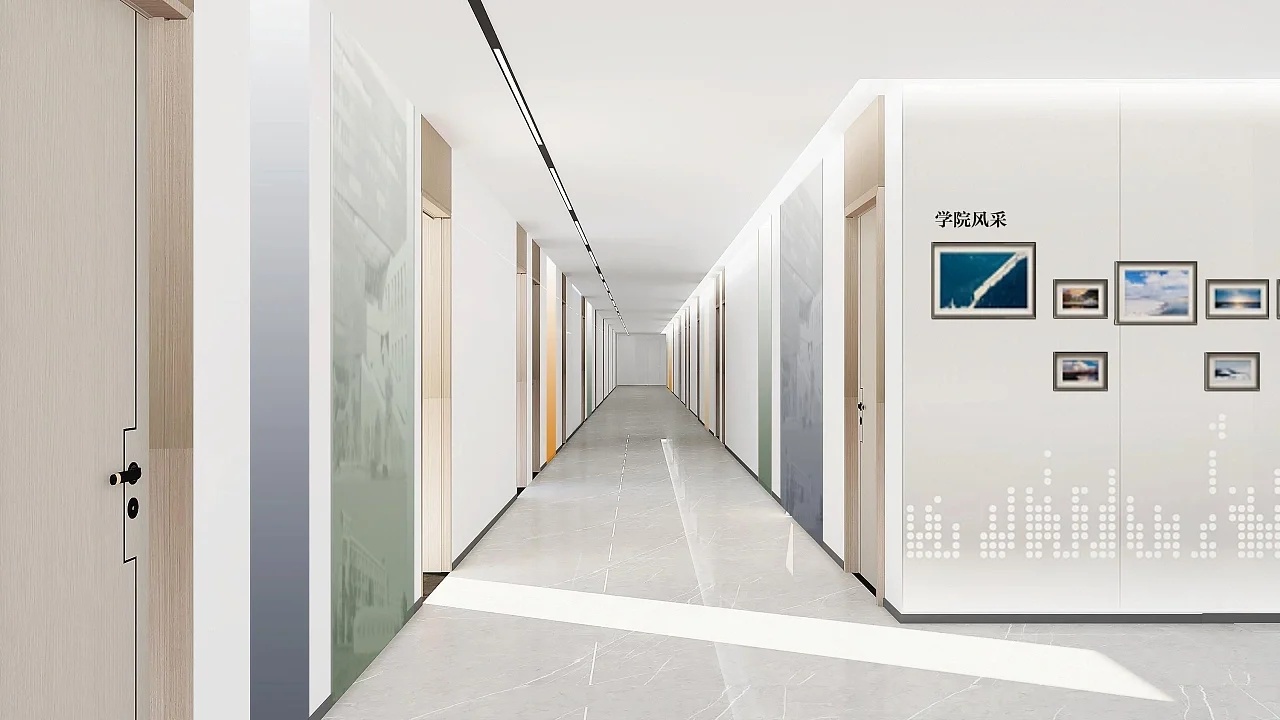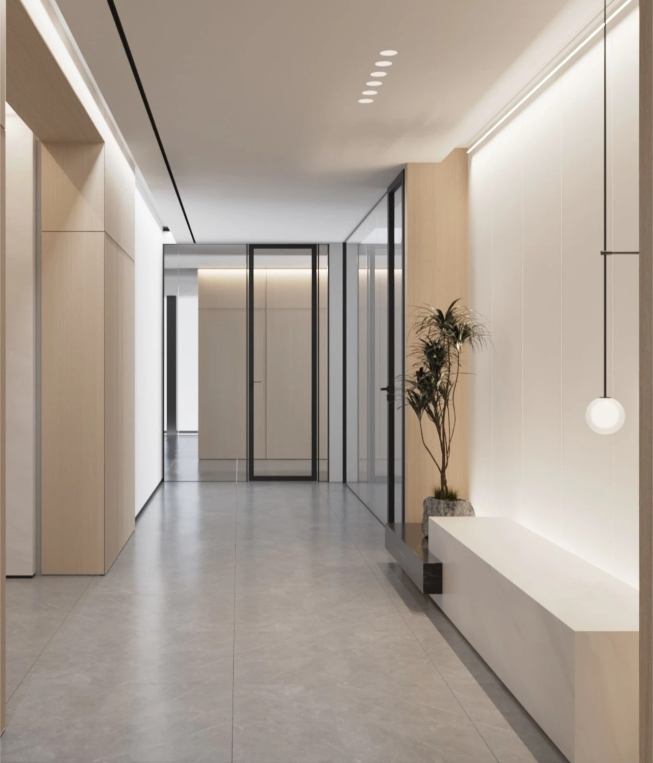 因应“天圆地方”的传统哲学,设计师在办公区域入口处设置了空间转折的节点,圆形的天花,弧形的屏幕,空间能量在这里缓缓地流向办公区。而视线则会被通道尽头的「玉兔奔月」所吸引。这是唯一的一幅,以艺术装置的形式设计制作的立体积木。平面的铺陈、立体的堆叠,体块、图案、层次、光影,成为幅难得一见的空间装置艺术。