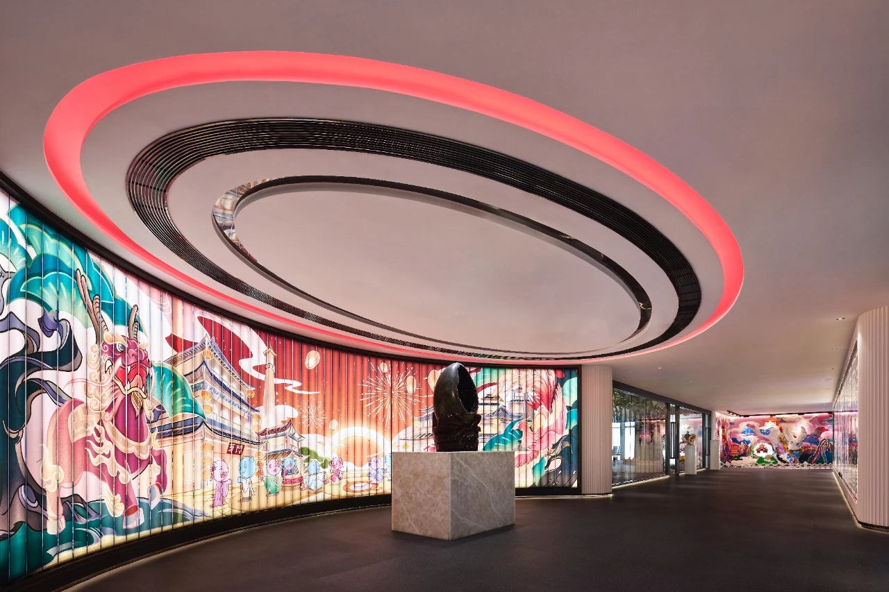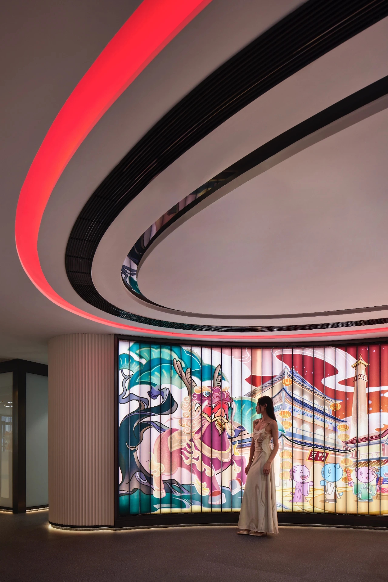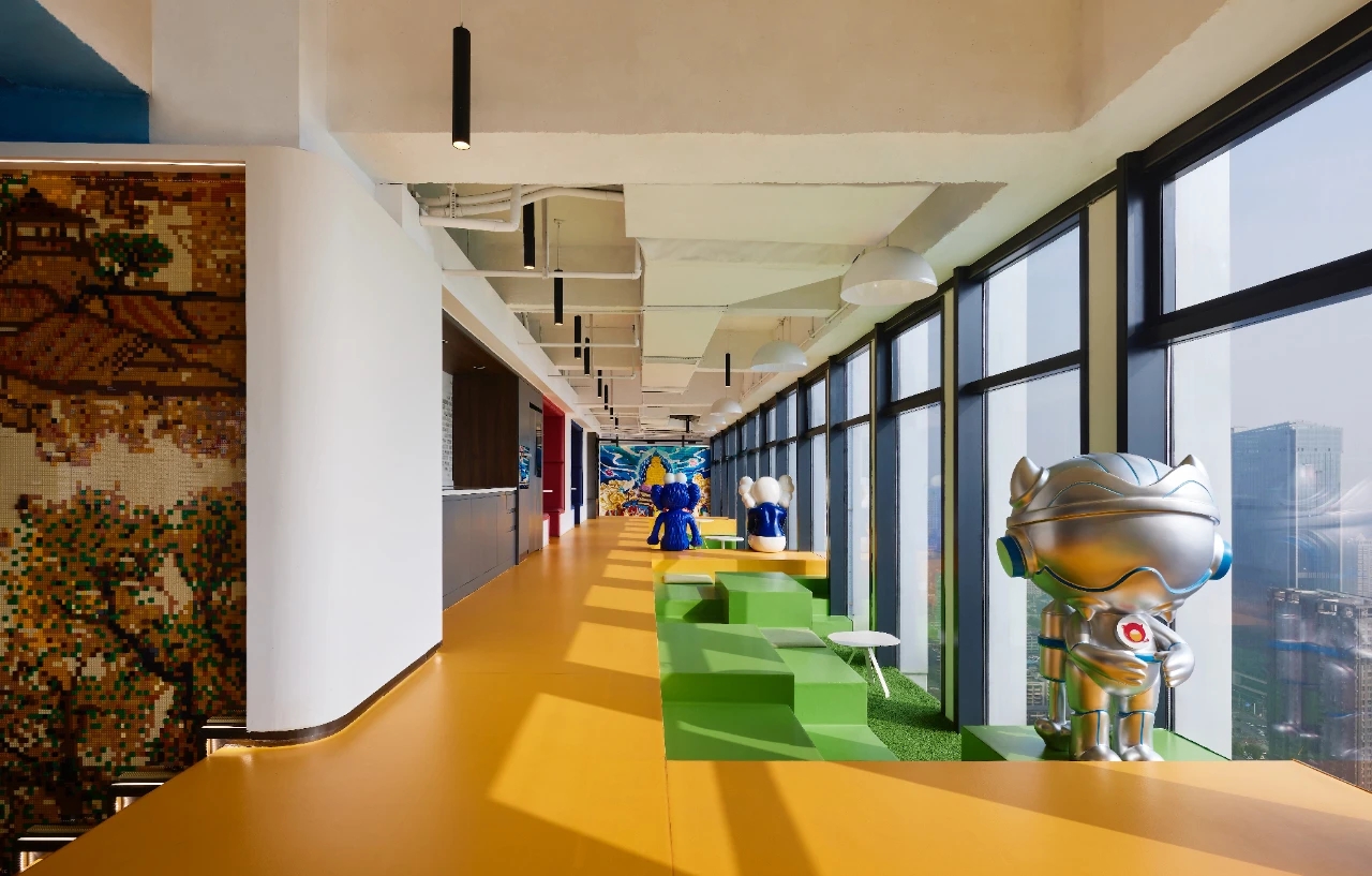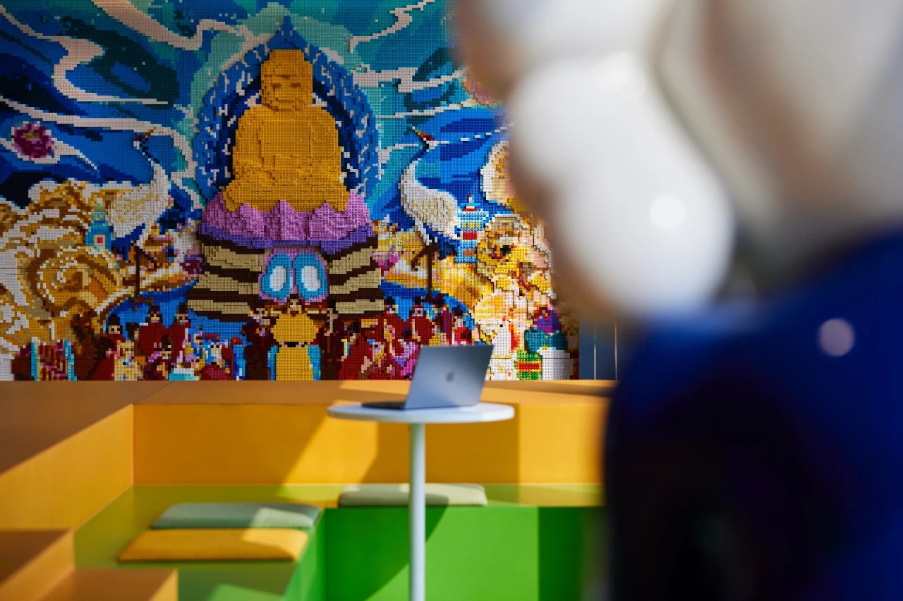采用积木元素,颠覆性地运用500万粒积木颗粒,对中华艺术瑰宝进行二次创造,在空间中讲述传统文化故事,营造出兼具国潮韵味和风尚LOOK的办公环境。