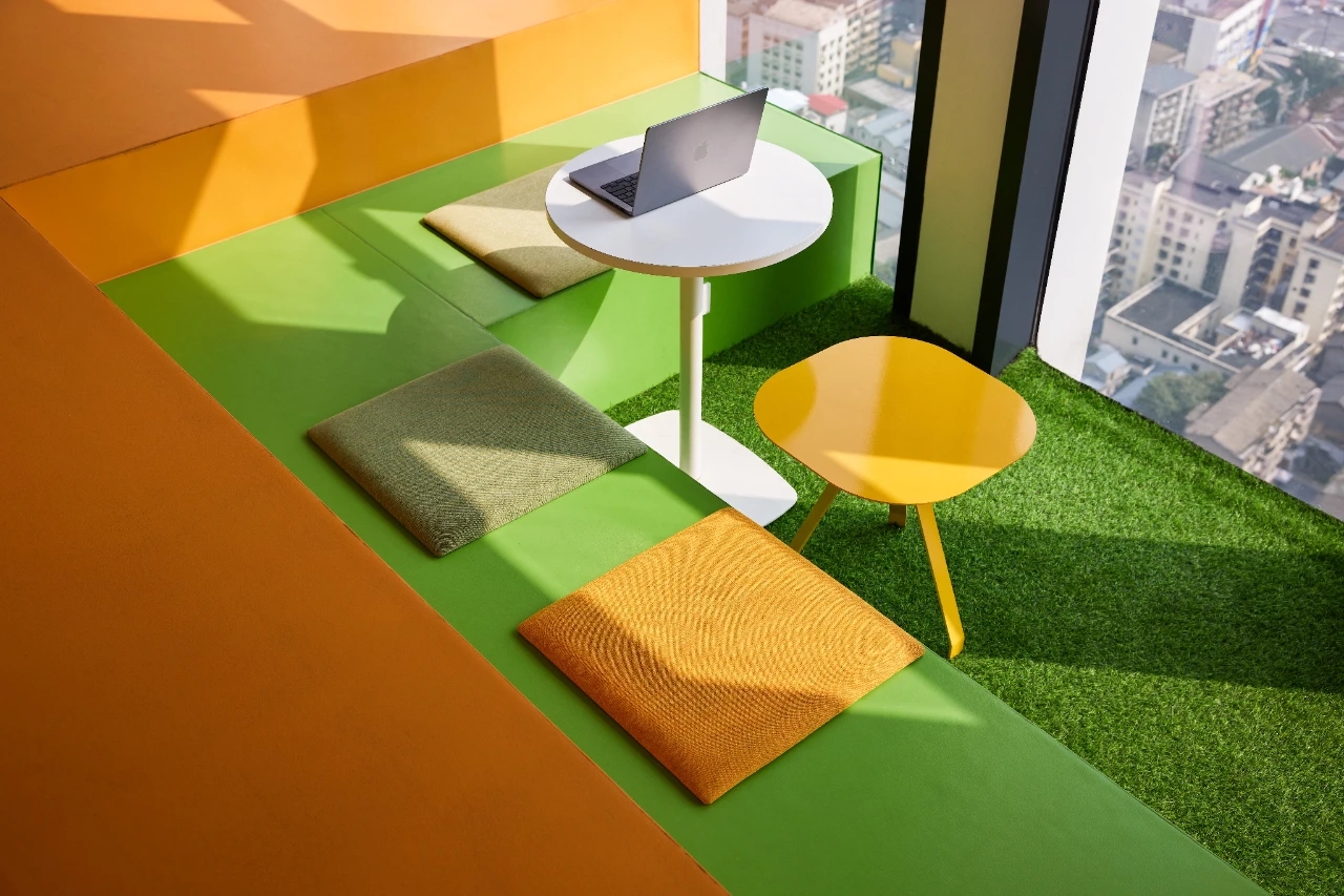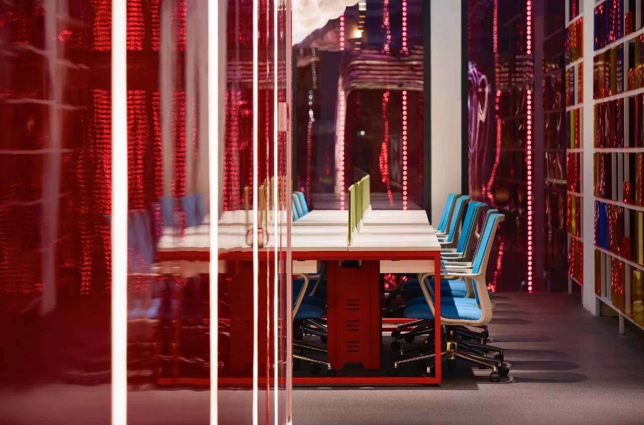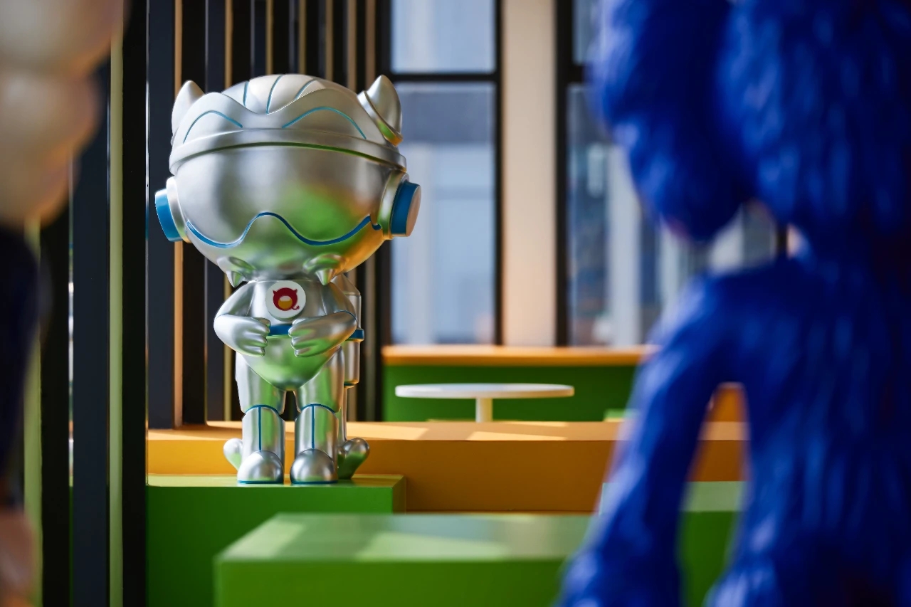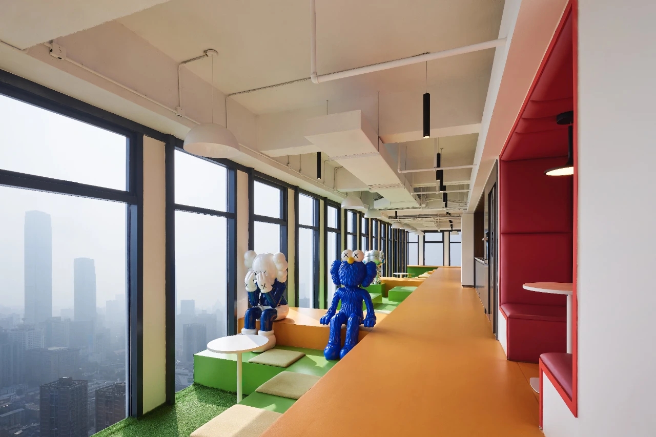 采用积木元素,颠覆性地运用500万粒积木颗粒,对中华艺术瑰宝进行二次创造,在空间中讲述传统文化故事,营造出兼具国潮韵味和风尚LOOK的办公环境。