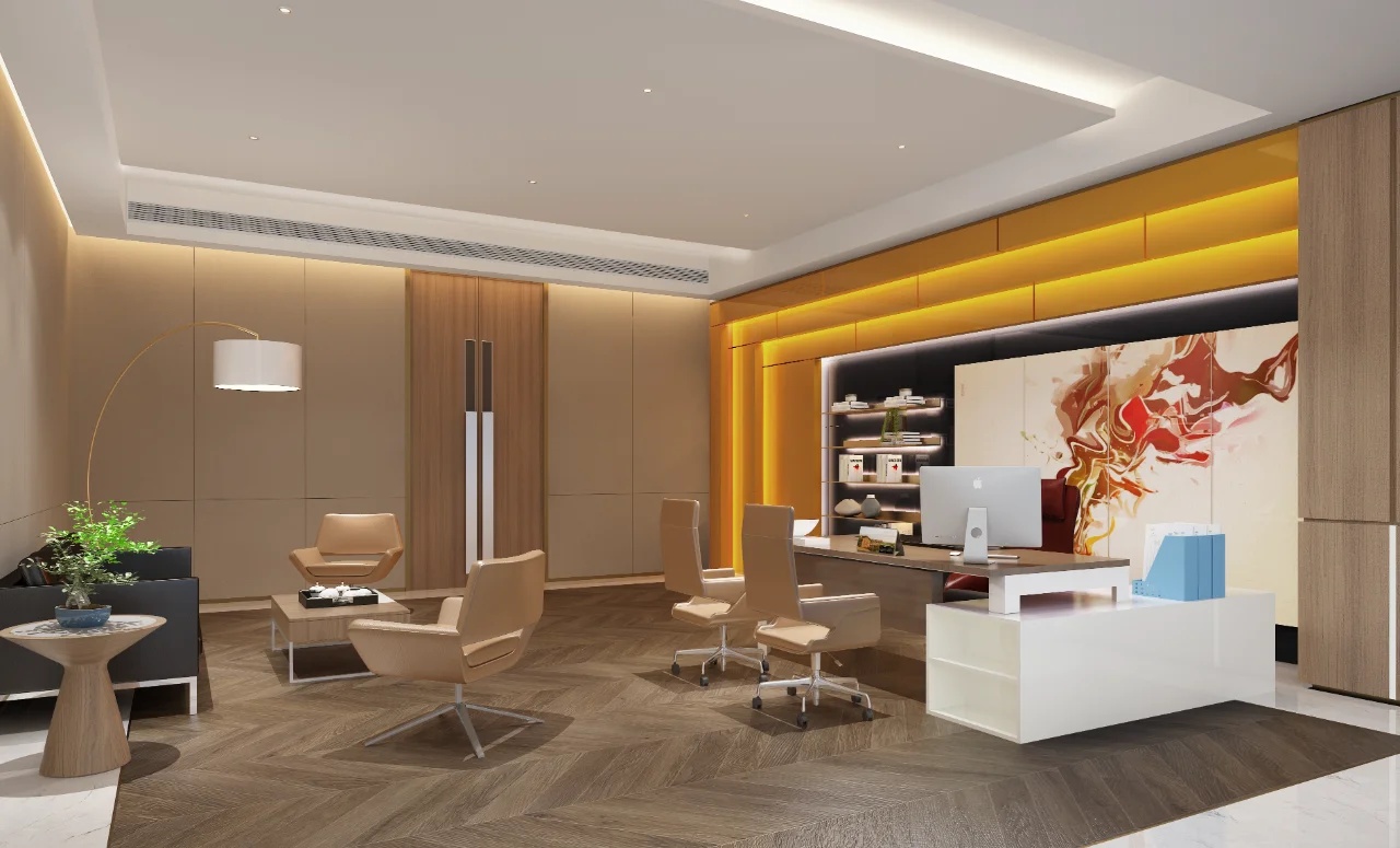 木的润,白的净。光影间,自然色调的微妙变化将办公空间的柔性点亮,私享的空间带来相对的独立,大面积的木饰面又能保证与整个办公区域的氛围相融。简约的设计、舒适的氛围,无论是伏案工作、项目探讨,还是接待洽谈,都能做到从容有度、挥洒自如。