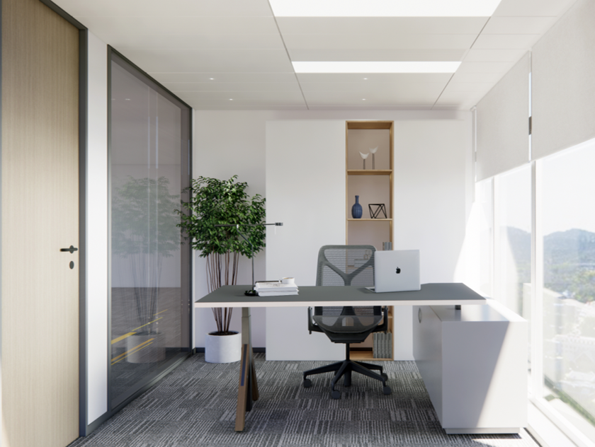 空间布局采用开放式设计,以自然光线为主,营造出明亮、宽敞的感觉为确保工作的私密性和高效性 ,为员工提供一个轻松的办公空间