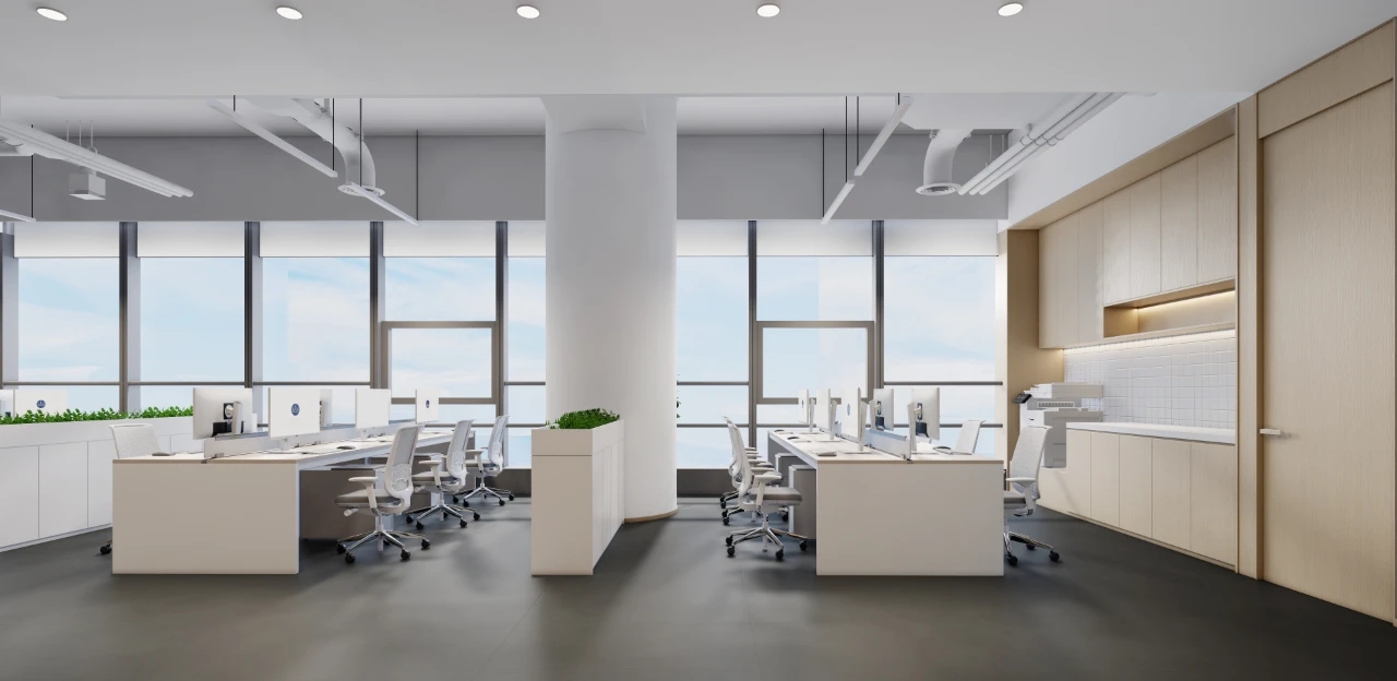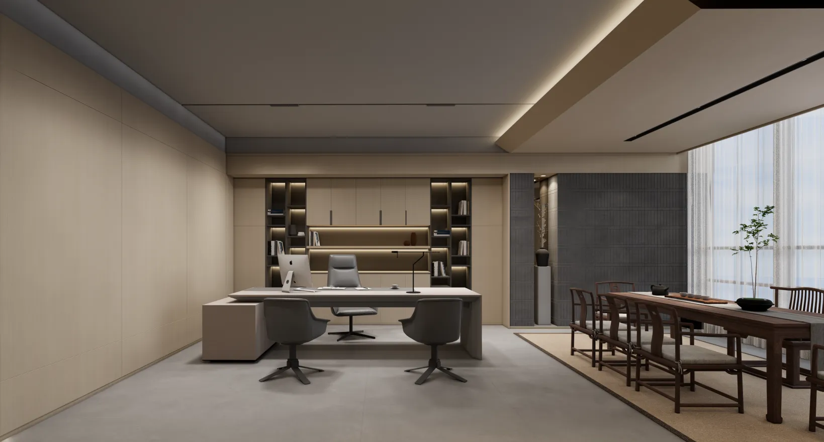 功能为先,高效至上,为办公空间定立了设计的基调。在尺度上,克制的秩序,昭示理性的精确。