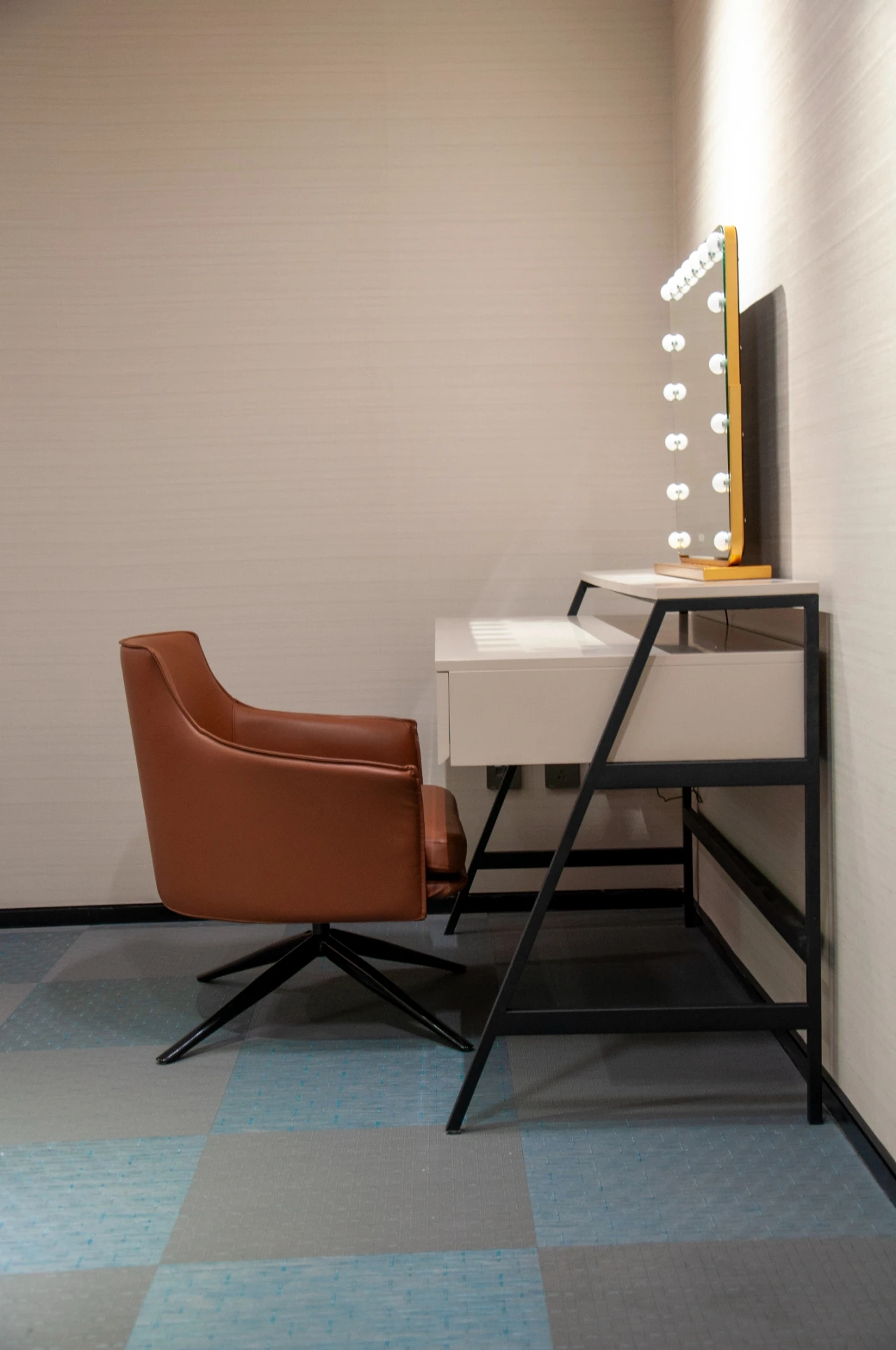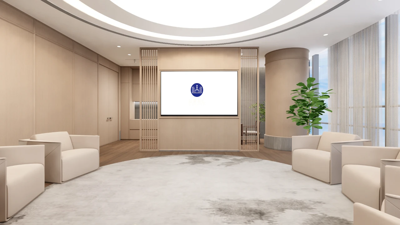 进入公司前厅,映入眼帘的是其现代的装修风格以及简洁规整的公司logo。侧边配以造型独特、棱角分明休闲沙发,墙面装饰同时给予访客一种很强的艺术冲击力。到达工作区之前,有一段走廊,走廊两侧是琳琅满目的乐器与饰品。办公区采用了常见的门子型腿工位,简洁大方的同时看上去秩序感十足,实现了空间利用率最大化。走廊尽头是领导室,几个领导室都采用了同样的家具配置,升降班台+矮柜的组合方式,其中一处房间采用了黑色胡桃木的贴皮颜色,与背景墙黑白色挂画相呼应,高柜黑白撞色设计,内嵌扣手,整体利落、科技感十足。