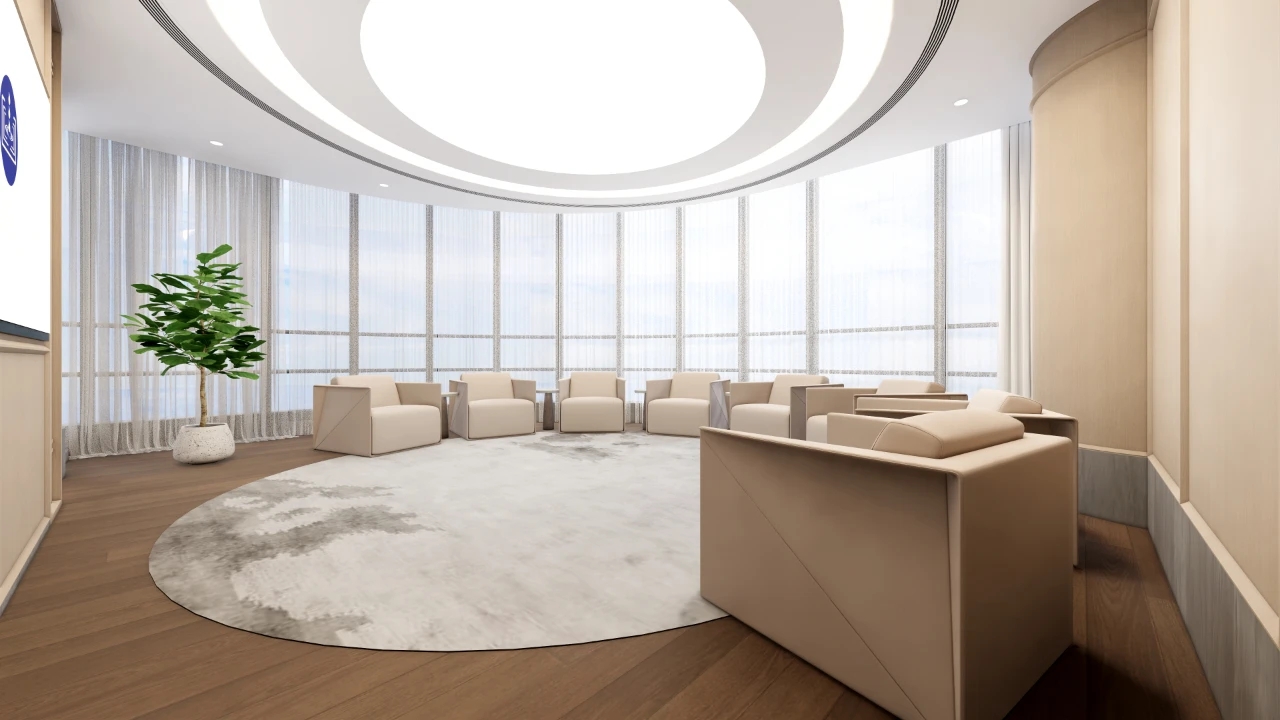 开放式办公区和洽谈区的半透玻璃为整体建筑带来了朦胧幻化的视觉效果。穿梭其中,视线透过半透明的玻璃,营造如在未来科技空间中探索的感觉。