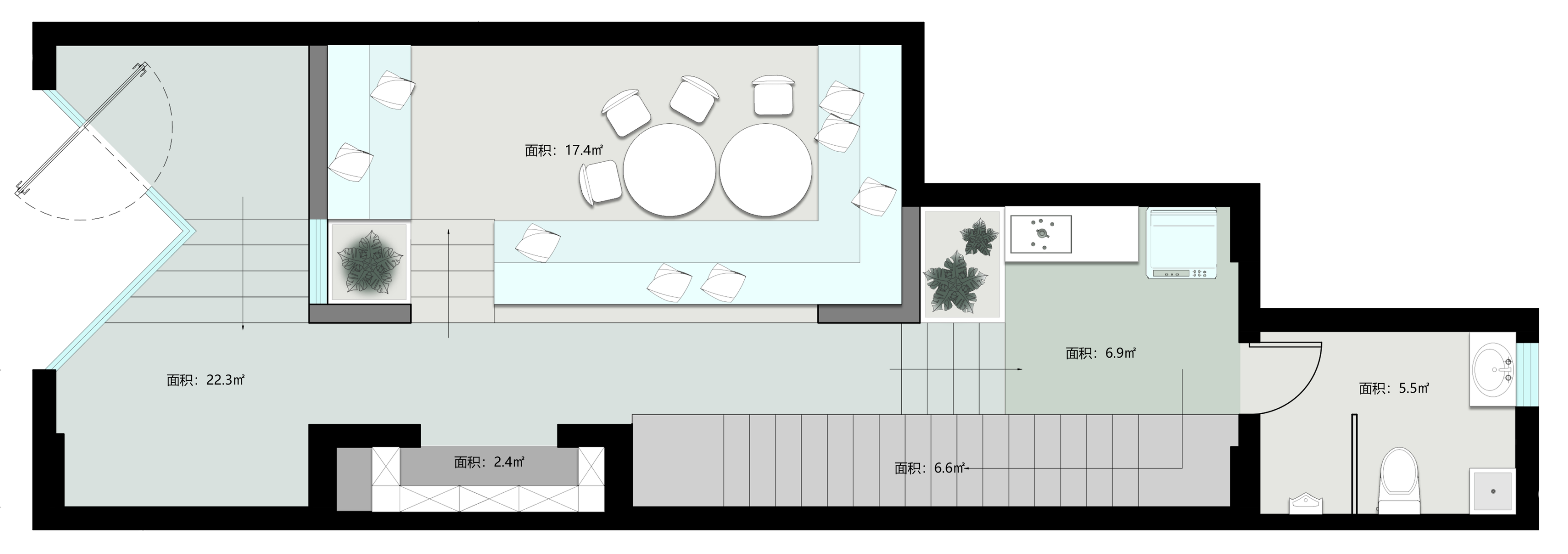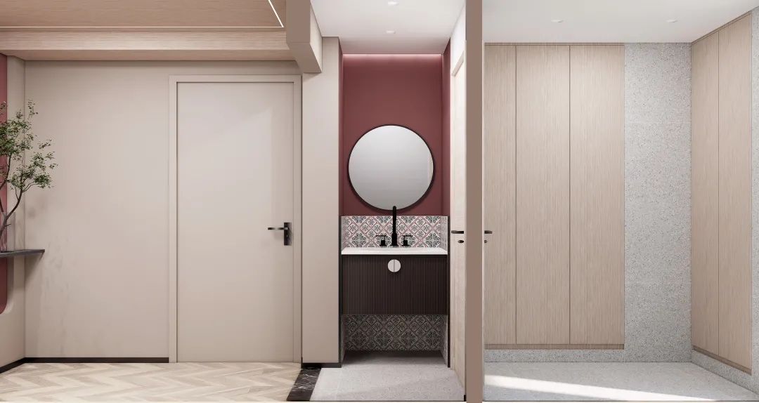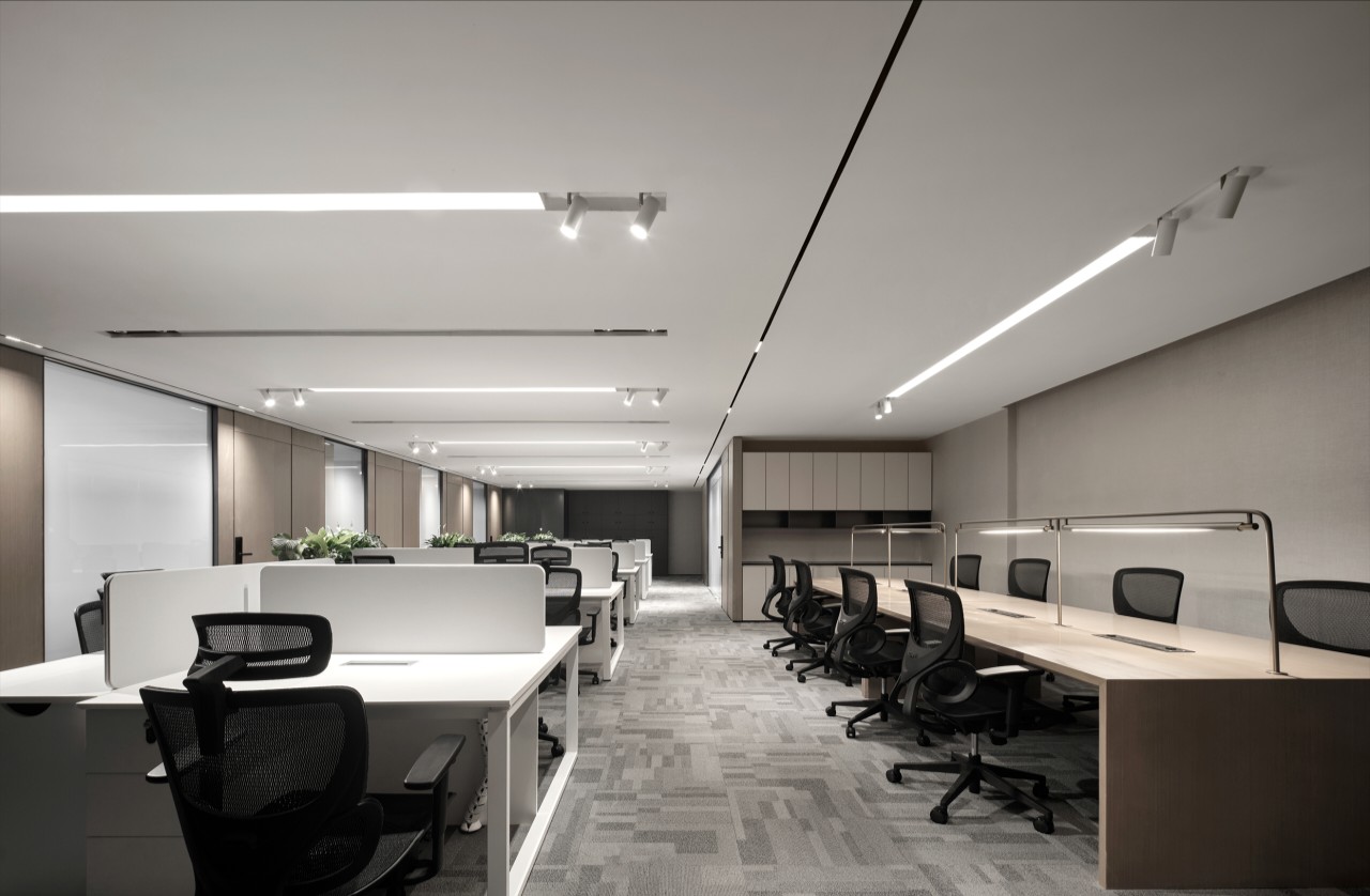 原来的卫生间里宽大的洗手台和马桶在一起,利用率非常低。现在将卫生间改为干湿分离,即方便了员工的使用,也满足了疫情期间消杀防疫的需求。 公司倡导健身文化,大部分员工都会在办公室放置健身用品,原来都堆放在开放式工位区域,显得非常杂乱。现在利用独立卫生间的内部空间定制了储藏柜,专门用来存放员工的健身用品。空间利用率大大提高,整体空间也更加整洁。