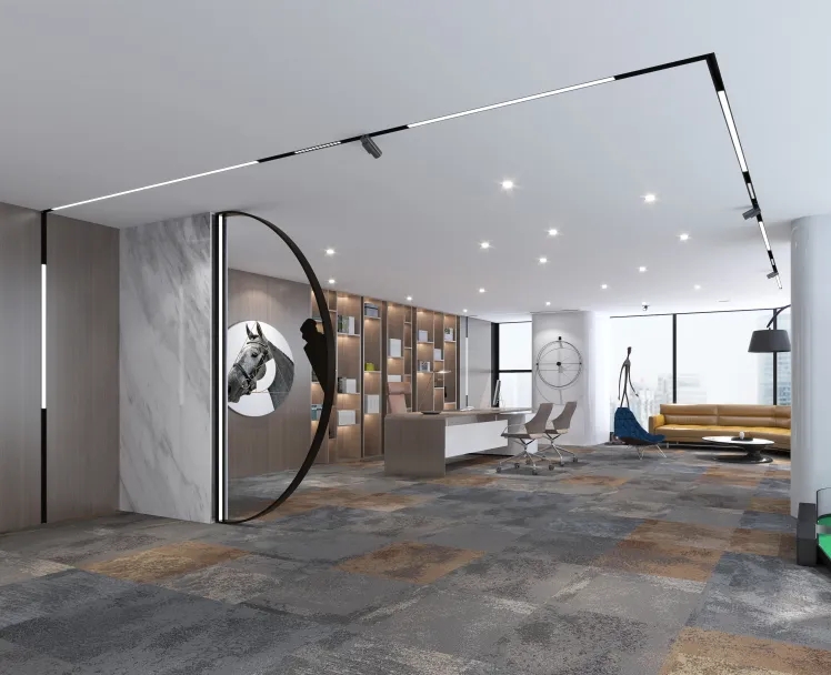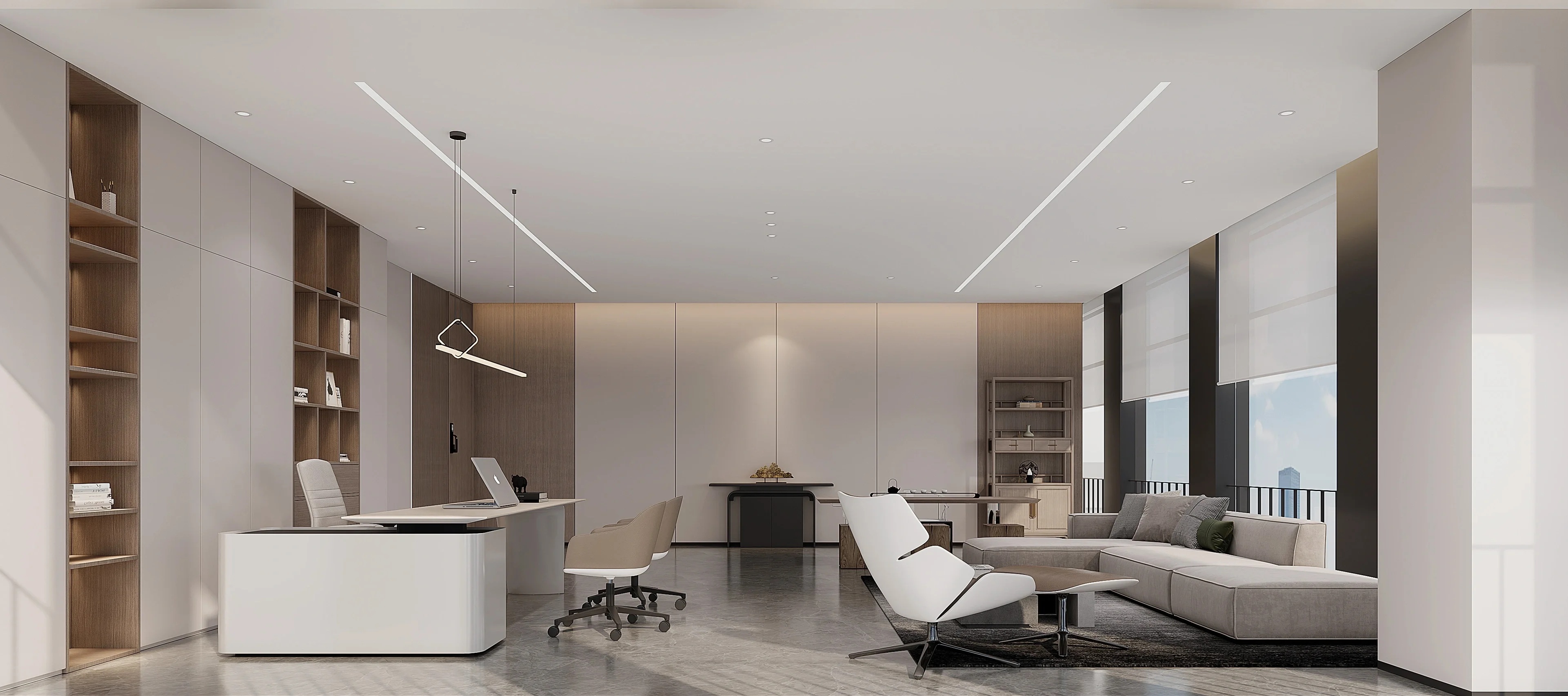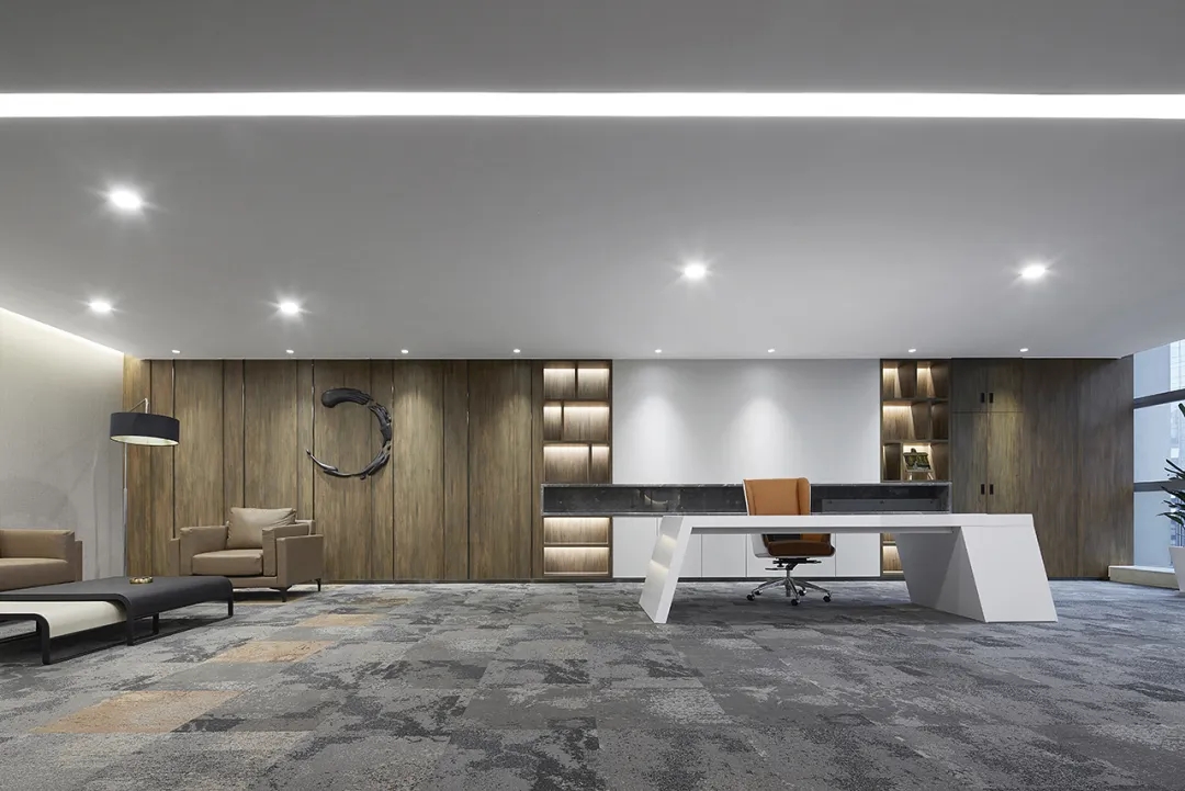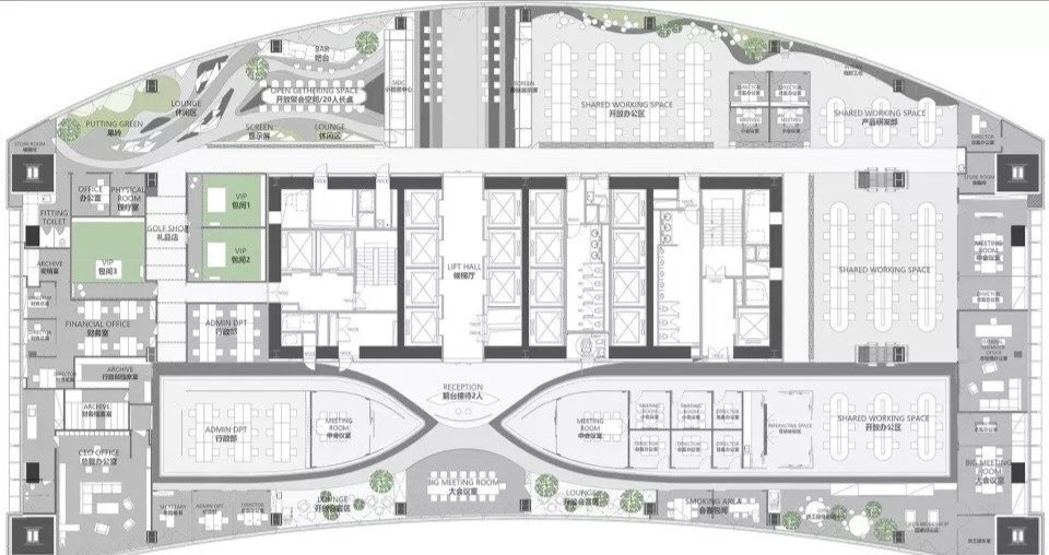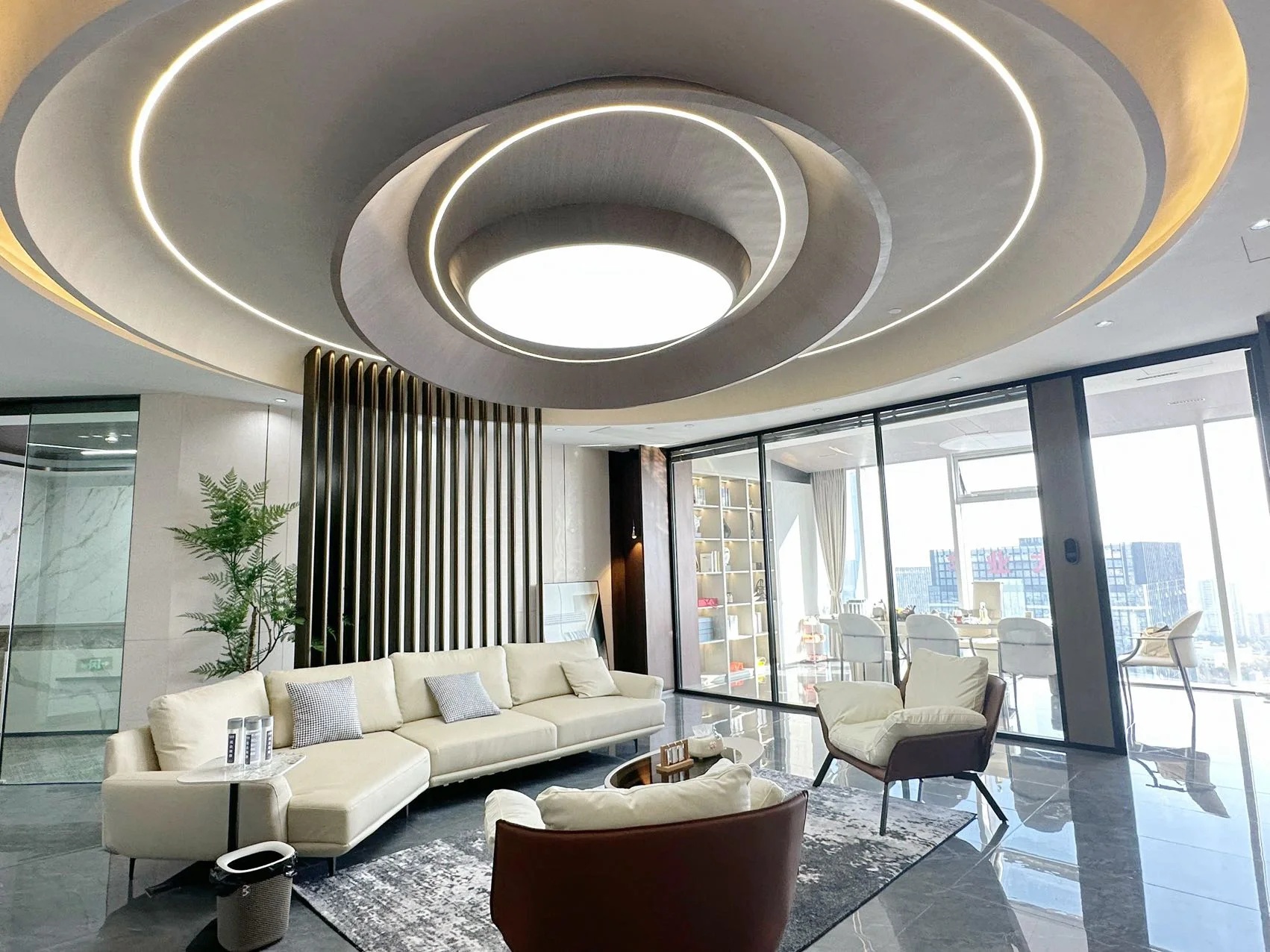 在大面积的黑白二元对立中,曲线以其灵动、柔美,及富有变化的特性,中和了干练,成就了一种简约又时尚的新感官体验,同时也柔化了空间中沟通交流的情绪。