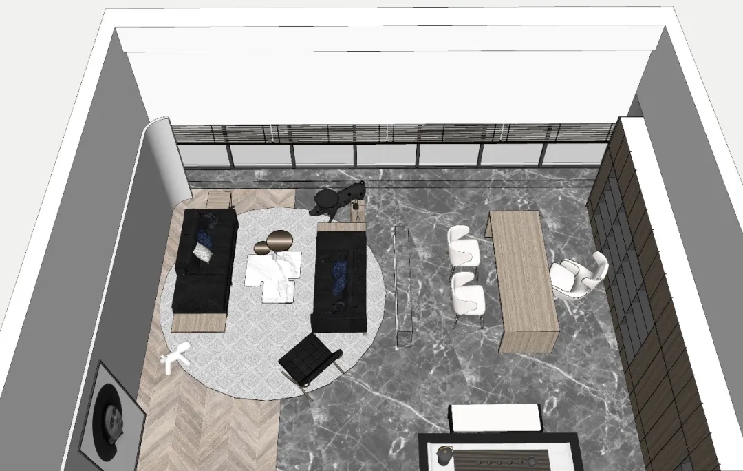 曲线的神来之笔,白色的基底,恰如空间盒子的意向,既加持了干练的聚焦,又有果断分明的间隔,恰恰成为空间中对立而又融合的特色。