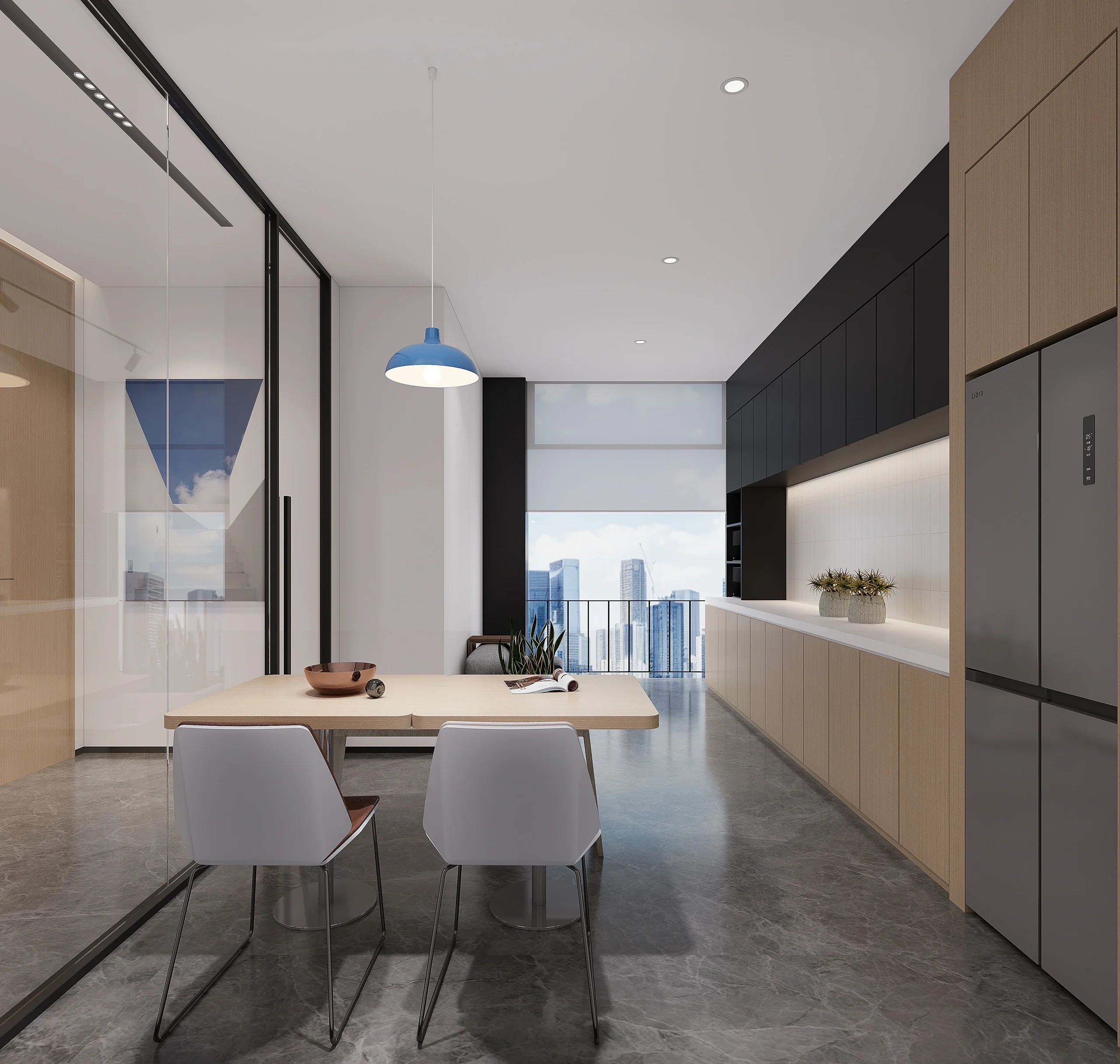 设计师打破了空间之间的条框间隔,充分利用空间的所有面积,空间变得更开阔的同时增加了室内的光线。大理石的到来是一种格调的升华,它让空间感和节奏感更加突显。木质地板与大理石地板的结合是一种调性的美,是一种独具一格的魅力所在。没有过多的装饰元素,用最本质的东西来描绘空间本身。东方韵律与现代西方的相互倾诉 排列 组合。再极致简约的空间里,来展现艺术的价值。