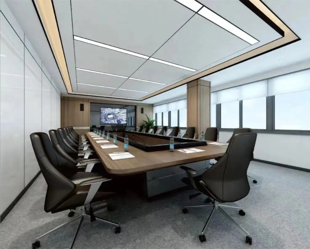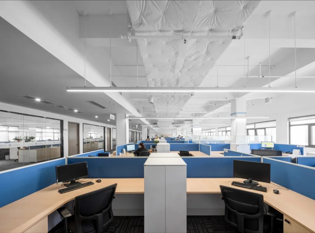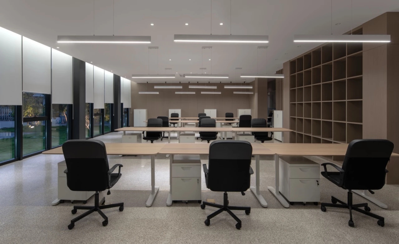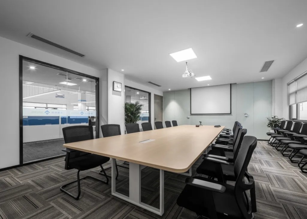150㎡的办公场所让“小中见大”成为了设计的核心议题,除去会议、物料及卫生间的实墙之外,所有区域划分及界定全部采用虚实结合的定制柜体来完成兼收纳功能的隔断,保证区域之间的相对私密又能保持视觉在空间中的延伸。