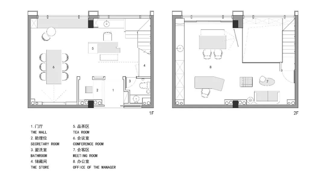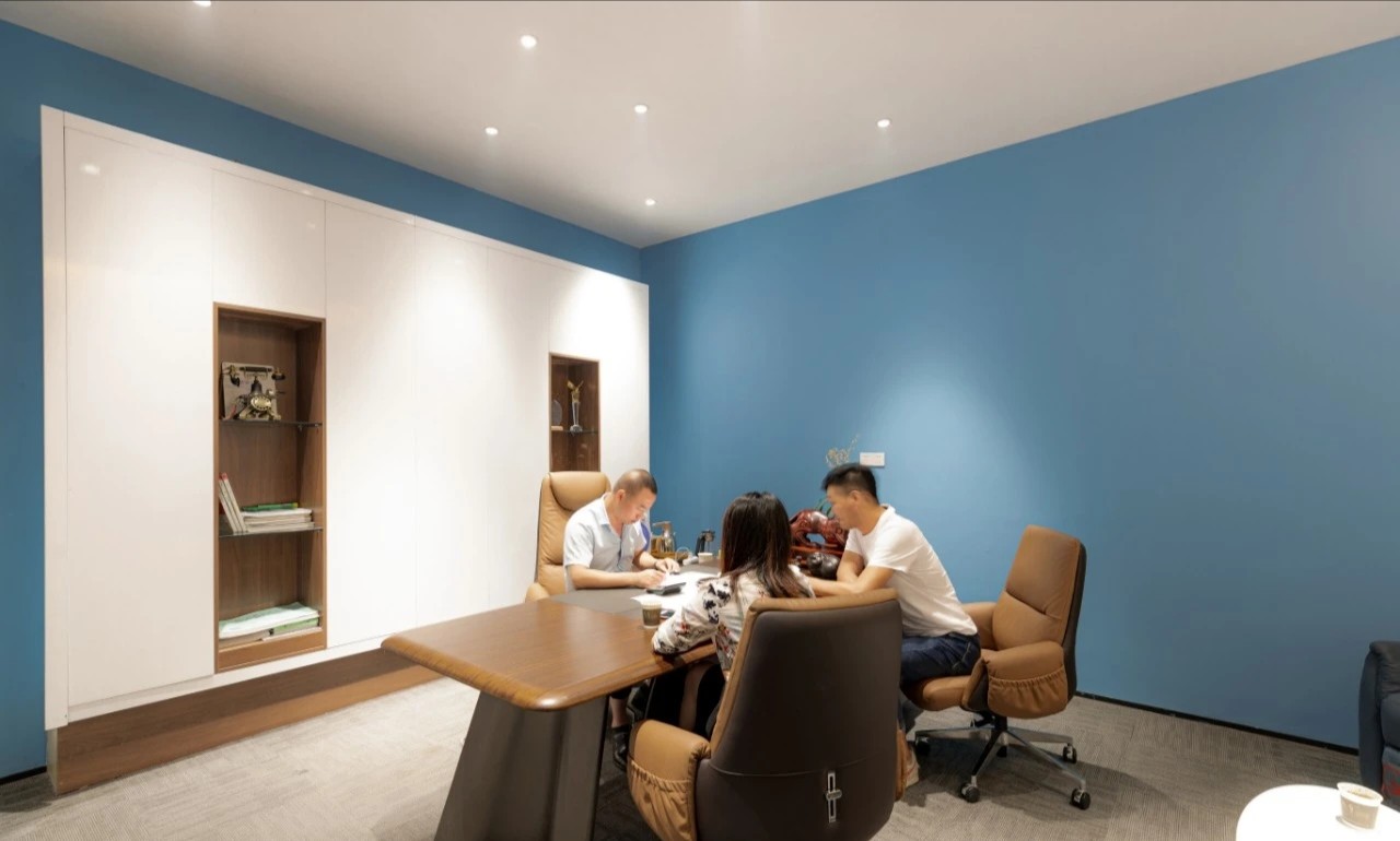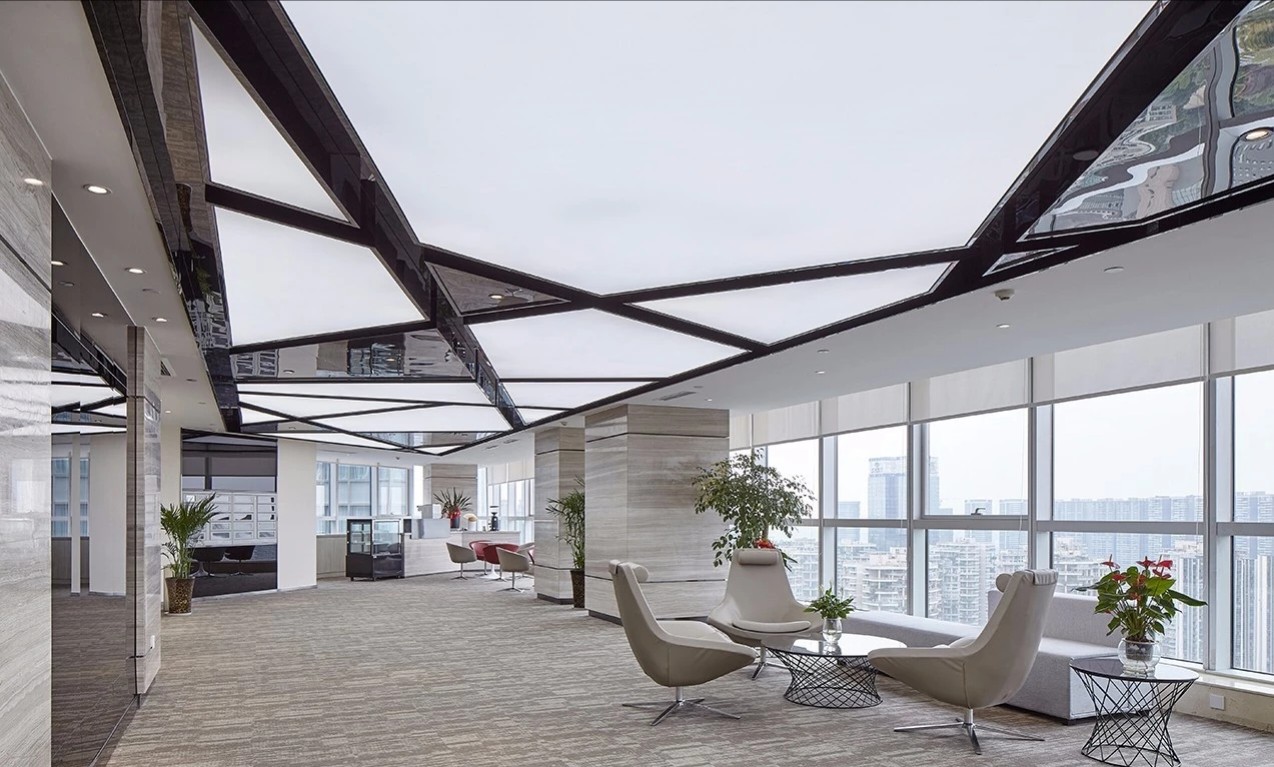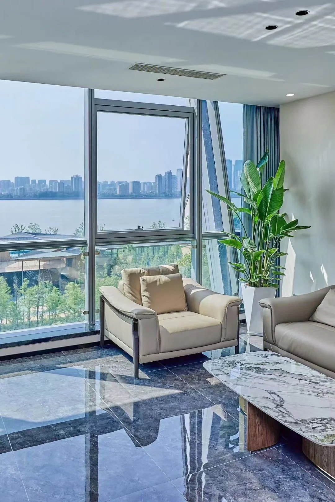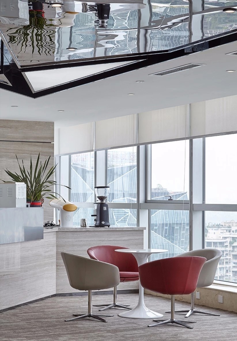 除去基本的体块承载主要功能区域外,设计以清晰的方式传达信息,摈弃冗余复杂的装饰,凸显核心区域功能。陈设家具避免选品厚重,以轻、巧、细的轻盈度填补空间空白,少量的色块变化创造空间通透感,理性严谨的办公气质下,松弛感如影随形。