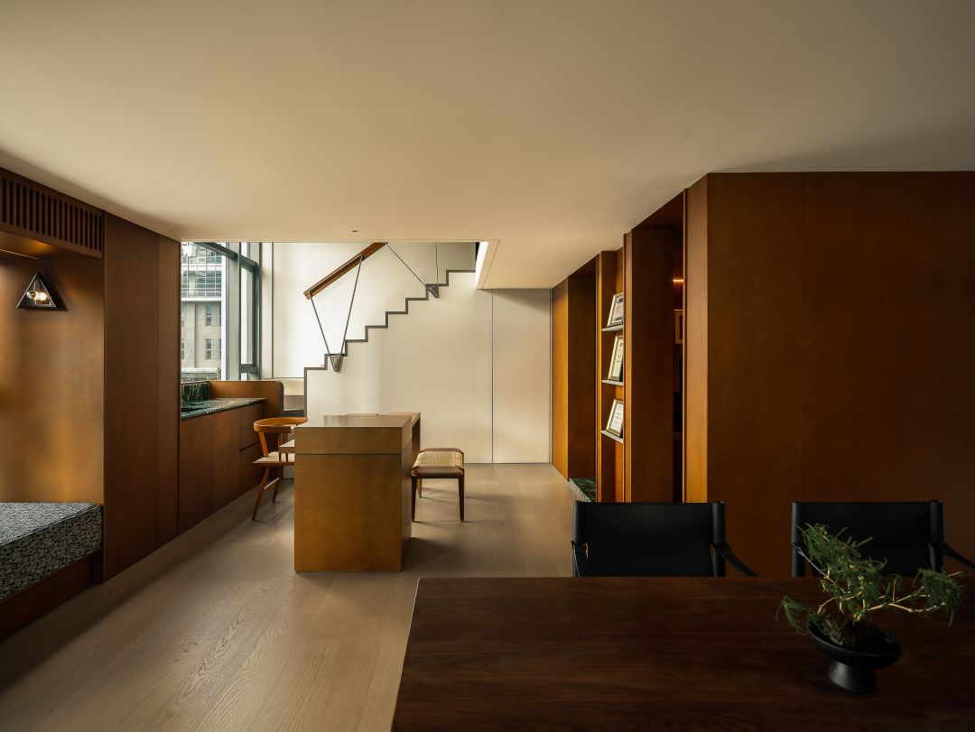 设计以现代极简强调空间装饰的开放性,保持统一的色彩基调下空间转折之间的流通性与体积变幻。