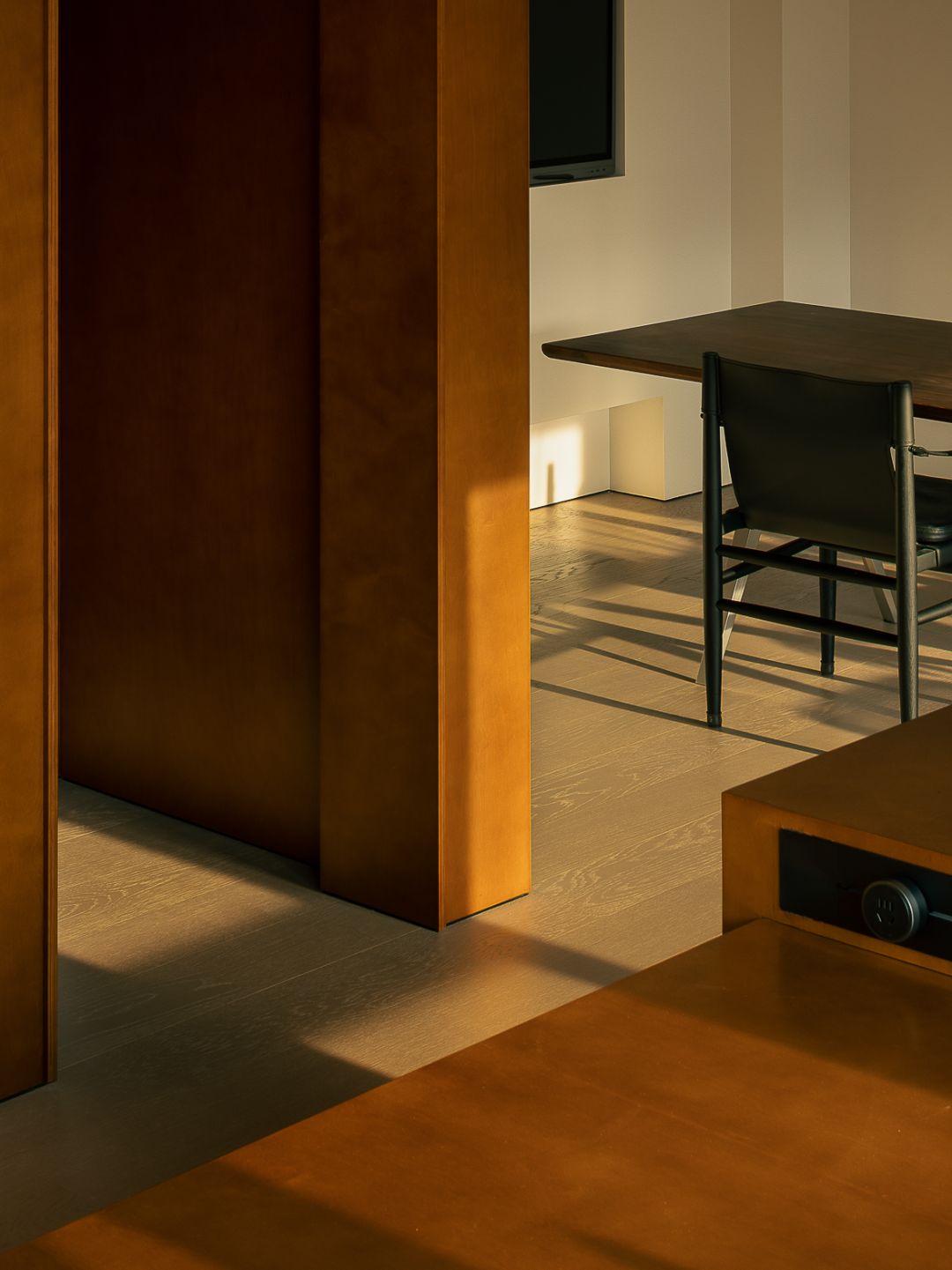 德式美学作为设计灵感之源起,空间于细节处展现的方、角、圆基础几何形态所带来的粹然理性美,以及线性与秩序美的交织融合共同蕴含于空间之下,关于平衡的智慧。整体细节的有条不紊带来理性的秩序,理性的秩序下透露出纯粹的气息。