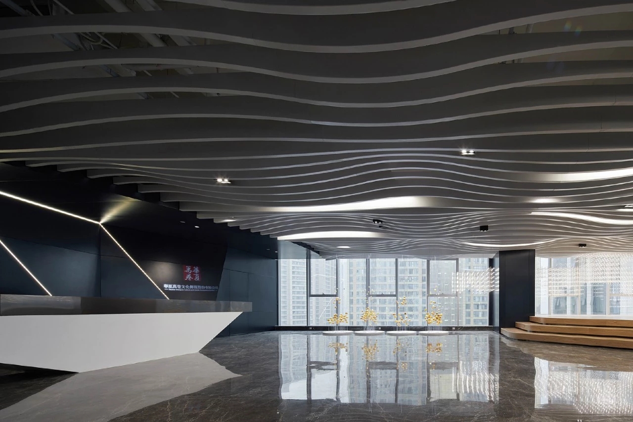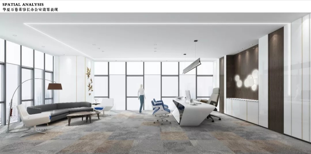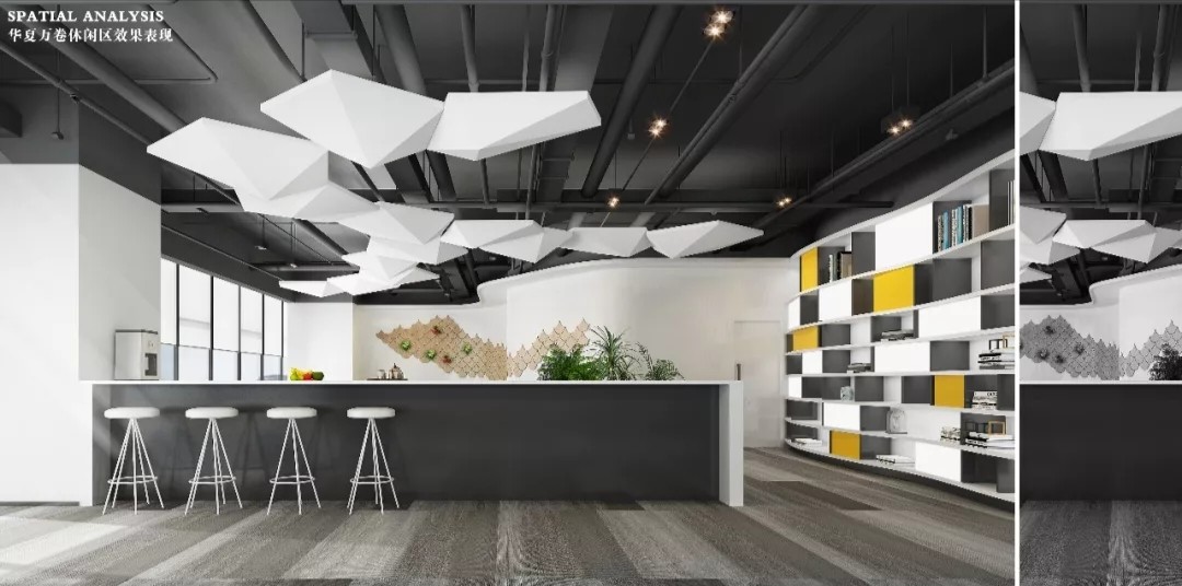 通过韵律几何造型与线状体的碰撞,加上灵动的中国国韵元素的相辅相成,创造出专属华夏万卷独有的企业文化内涵,将空间的静与喧嚣发挥的淋漓精致,唯有如此方能运筹帷幄,决胜千里。