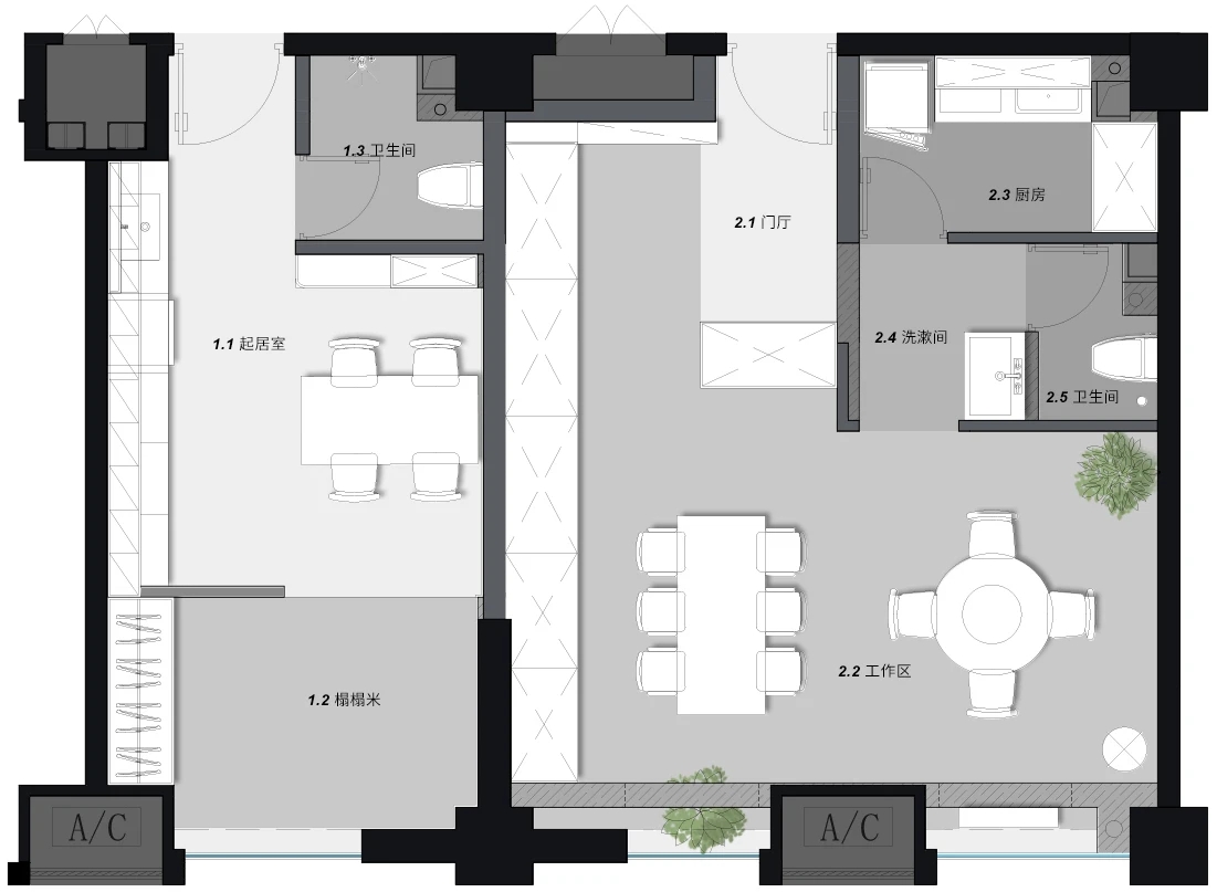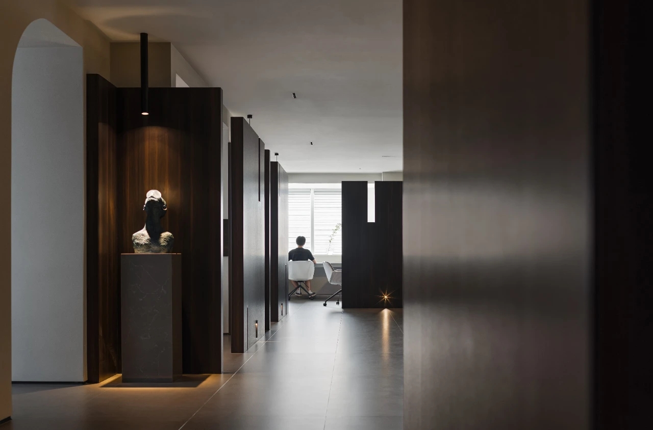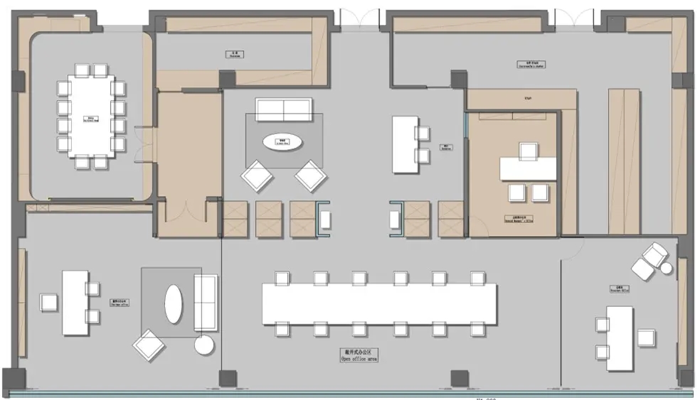 在色彩应用上,选择了简洁的黑色,白色,灰色作为空间的主色调,同时采用了富含自然纹理的木材,以及绿色系为空间增添活力。在软装搭配上,选用由深圳其美家具提供的现代、简洁、干净的办公家具,围绕本案的主题,构筑个性化空间。