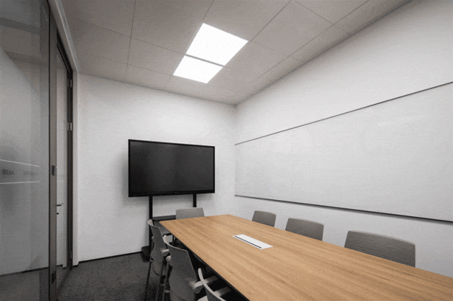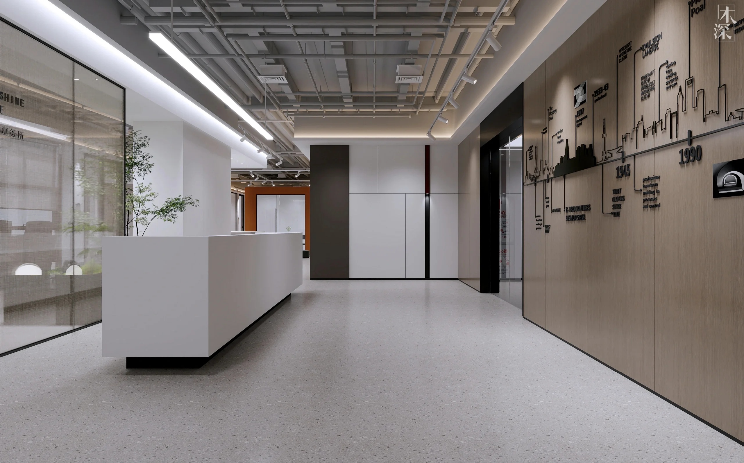 延续主楼层的布置,副楼的前区依旧是顺势的流线延申至工区。与之不同的是天花与立面造型和材质的用法,没有主楼层的叠复交加明显此处天花更简易直接、立面的材质也换成木饰面与主层冷调的岩石面形成对比。前台的形式也是随之改变增加了紫色亚克力的岩石纹路,用通透的材质结合凹凸的岩面将柔与刚整体结合起来。