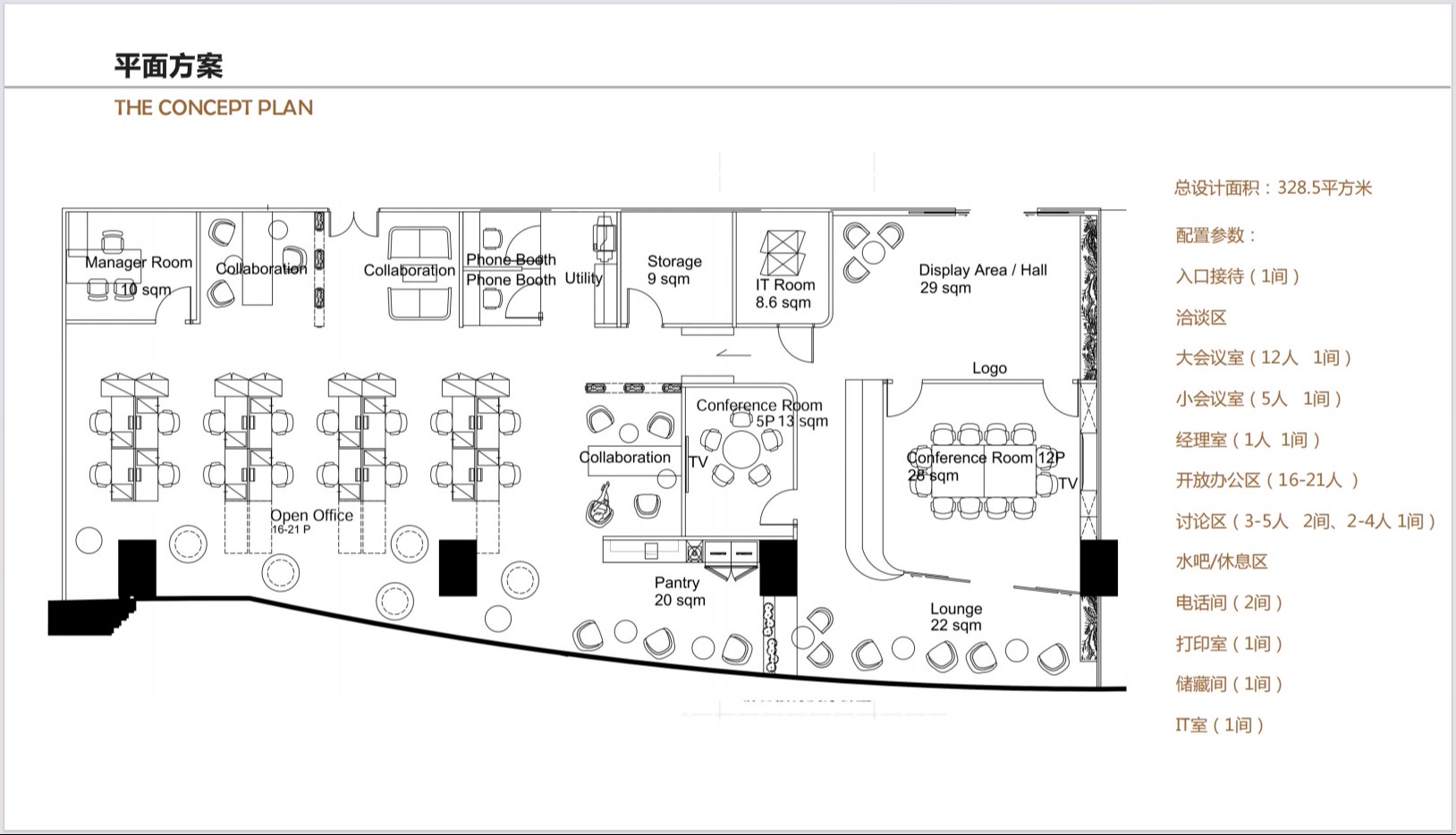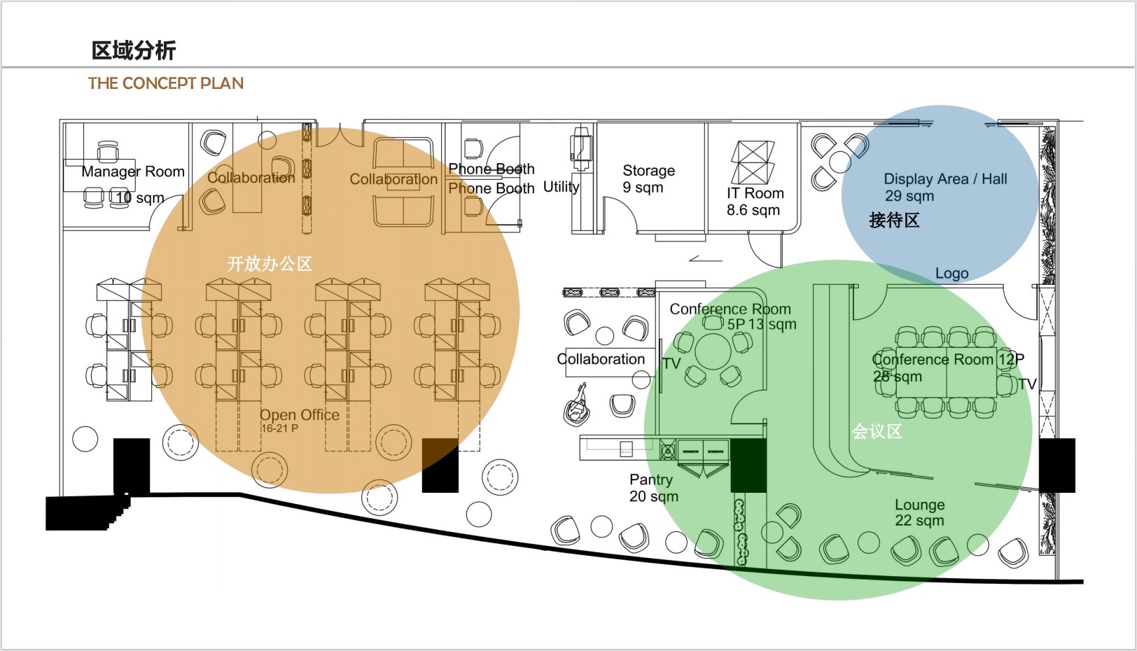 包含了两个主要功能,一楼主要是18人的工作空间,二楼是一个可以容纳200个座位的大厅。然而,该公司同时关注位于一楼的、将会与二楼通过走廊相联系的主大厅的设计。