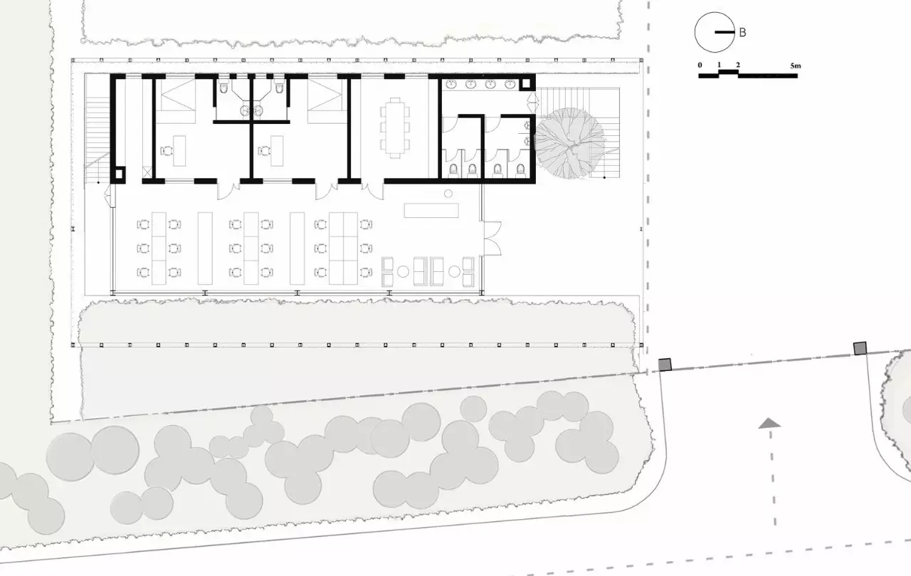 同时希望能建立一个有着优越区位、高生活质量和人与人、人与自然以及自然与建筑的紧密联系的完美建筑。并且,他们通过创造在荣市的这个模范办公建筑来证明他们对此的渴望。