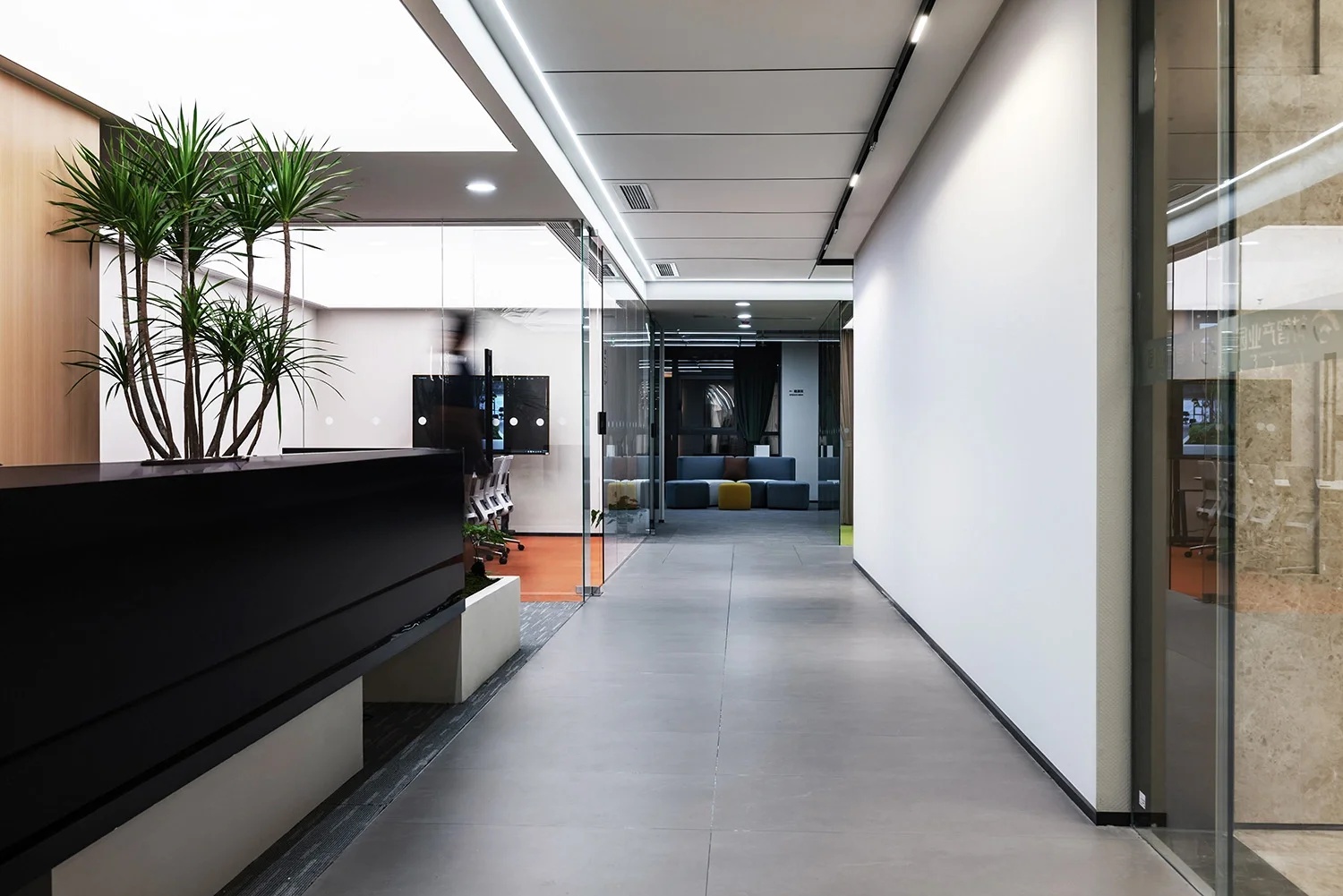 休闲区在内玄关和过道处由墙面延伸自然形成,经由可开合的四道玻璃门,既可看做是独立的洽谈空间,也是公共区域中不同场景的延伸。在精确划分过其他功能空间后,让这个空间处于一个恰如其分的地位也是我们一直想强调的课题。