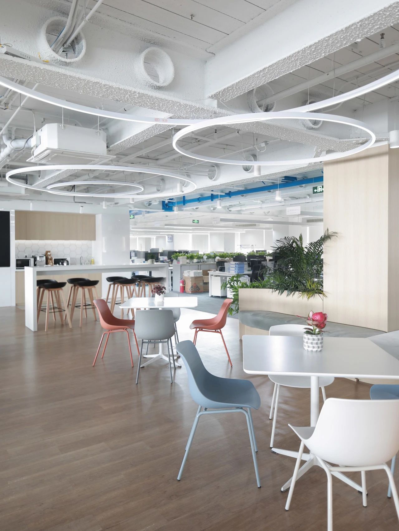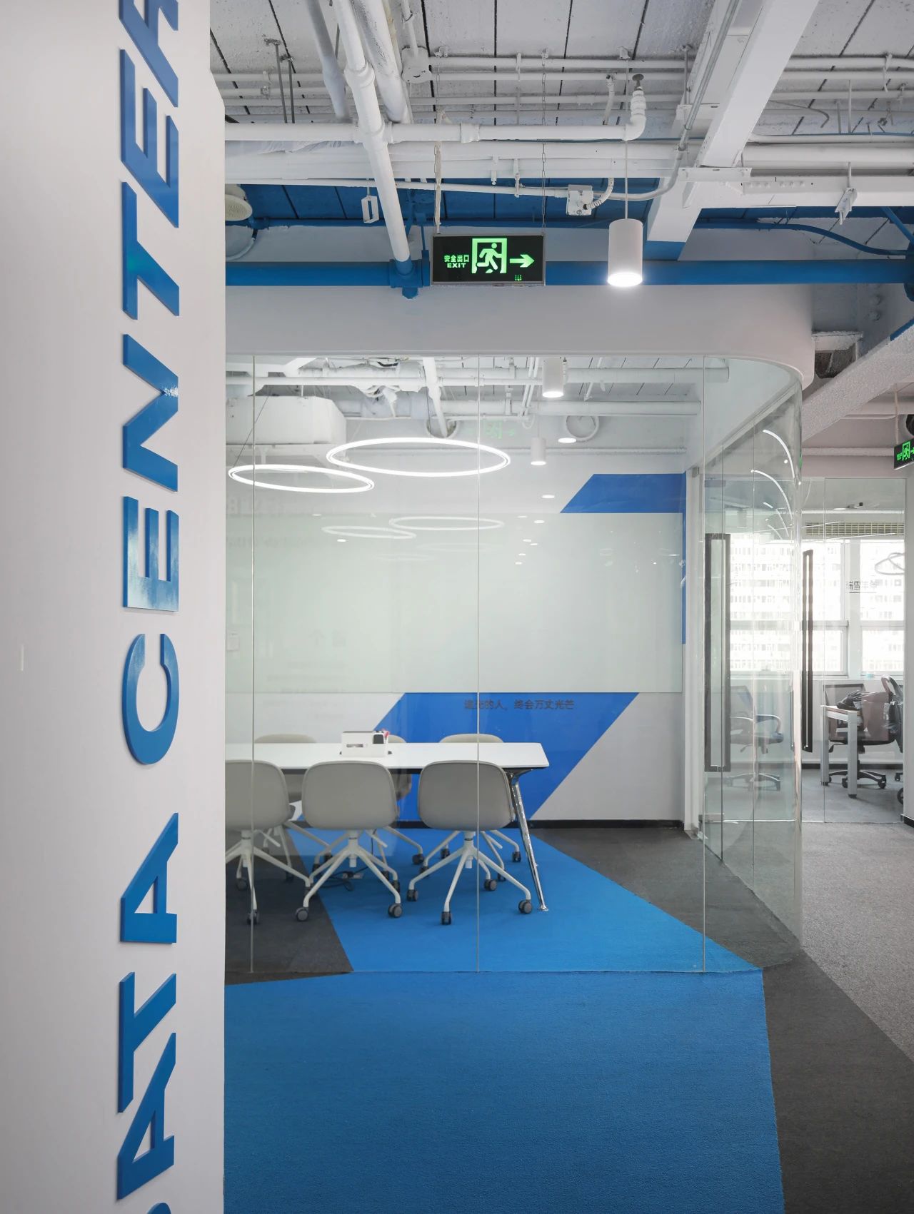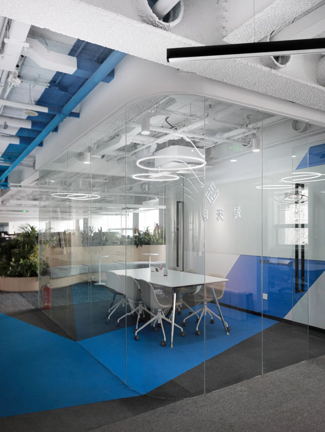 蓝色设计巧妙地点缀在整个空间中,与其他材质和元素相得益彰,为员工创造了一个舒适、明快、富有创意的工作环境。蓝色代表着海洋的宽广与深邃,象征着企业对未来的探索与追求。我们希望空间中强烈的视觉色彩,为员工带来一份清新、活力和激情,激发了员工的工作激情和创造力,为企业的发展注入新的动力。