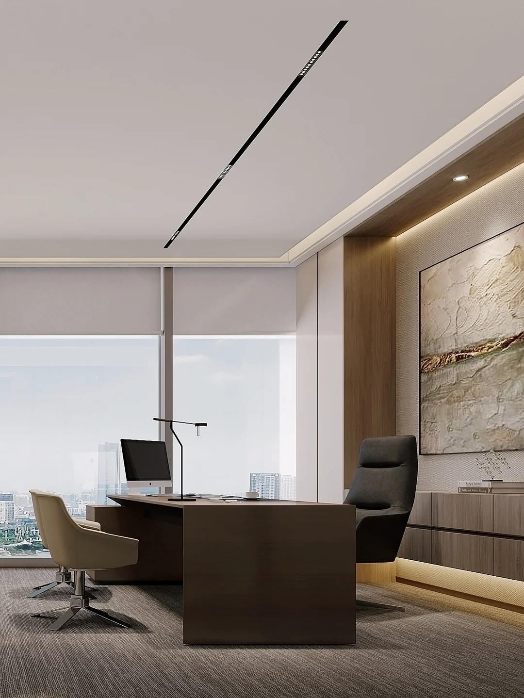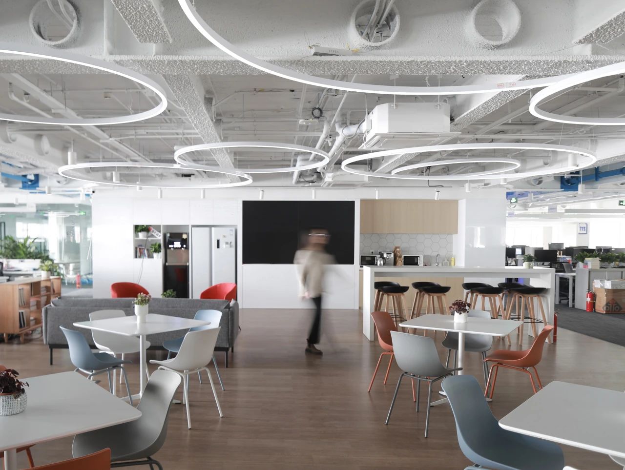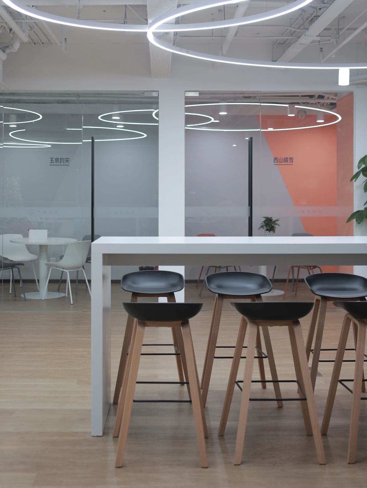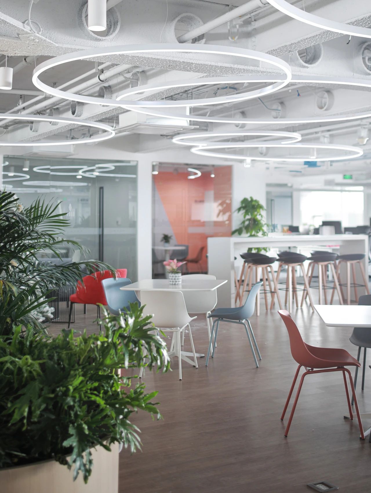 蓝色设计巧妙地点缀在整个空间中,与其他材质和元素相得益彰,为员工创造了一个舒适、明快、富有创意的工作环境。蓝色代表着海洋的宽广与深邃,象征着企业对未来的探索与追求。我们希望空间中强烈的视觉色彩,为员工带来一份清新、活力和激情,激发了员工的工作激情和创造力,为企业的发展注入新的动力。